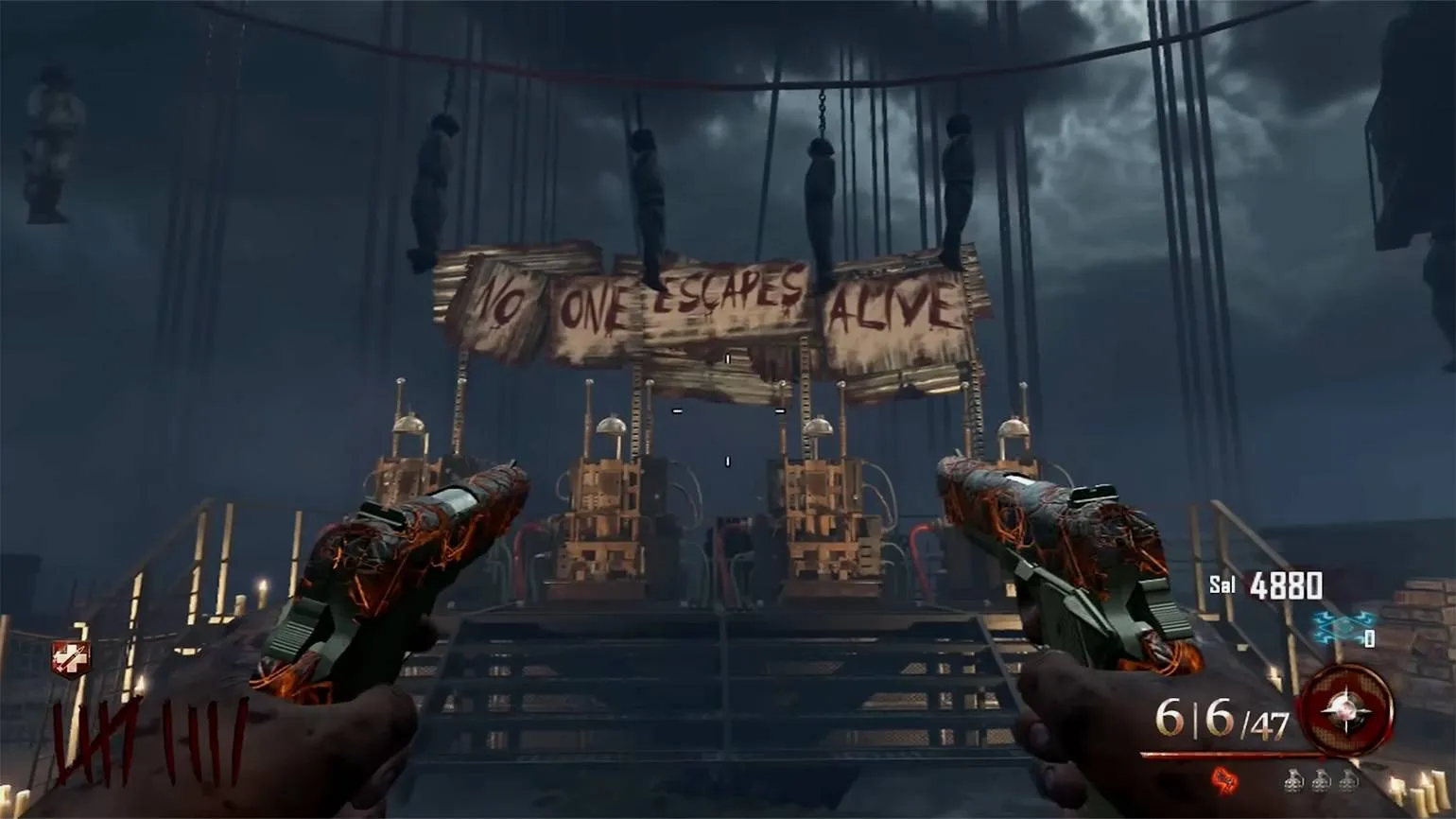 World at War заложила мощный фундамент для зомби-режима. Так, в заключительных картах, Shi No Numa и Der Riese, появились первые пасхалки — так фанаты режима называют квестовые линии, которые требуют сложных неочевидных действий для выполнения.