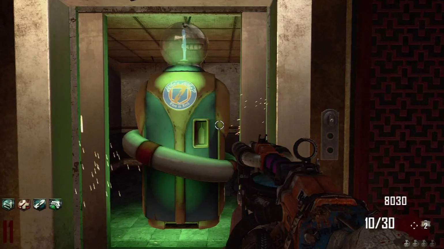 Улучшайзер, или Pack-a-Punch, — машина, которая делает оружие существенно мощнее. Апгрейд стоит недёшево: если обычную пушку можно купить за 1500–2000 очков, то для улучшения потребуется уже 5000. В будущем улучшайзер станет одной из главных механик игры. Без него долго выживать не получится.