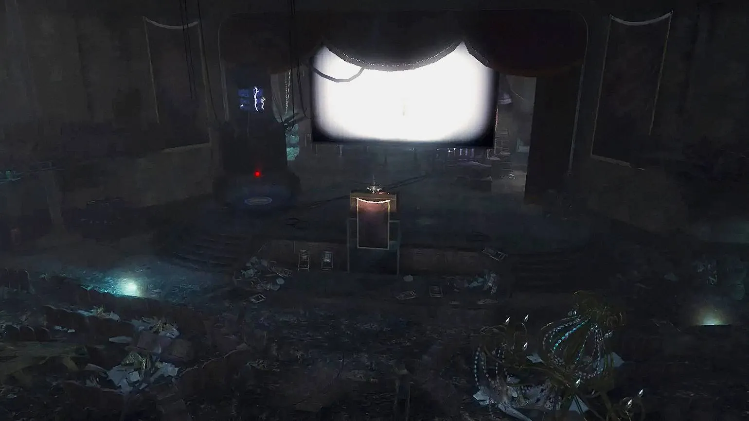 Kino der Toten состояла из пары просторных коридоров, актовых залов и одной большой комнаты. Кроме улучшайзера и нескольких перков, там ничего не было — обошлось даже без пасхалки. Но хороший левел-дизайн и относительная простота сделали карту хорошей входной точкой для новичков.