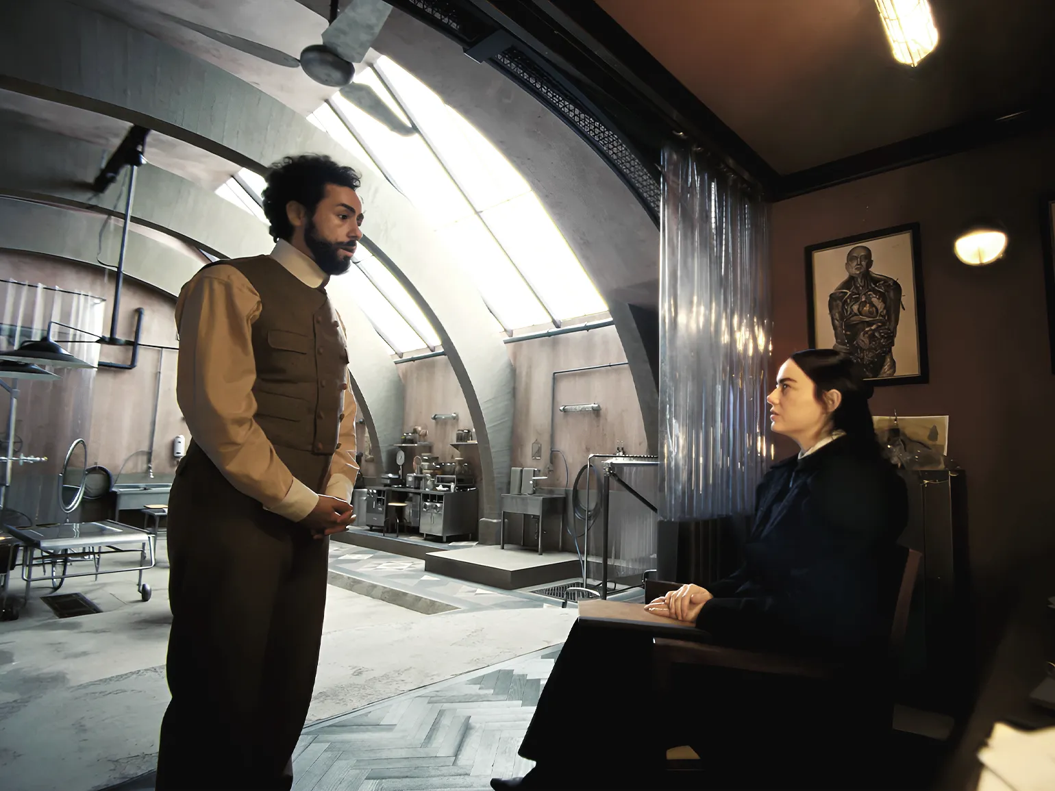 Помимо Стоун, к проекту присоединились другие звёзды. Главный визави Эммы Стоун здесь, конечно, Уиллем Дефо, который сыграл «отца» Беллы доктора Годвина. Друзья зовут его просто и скромно — Год, то есть Бог.