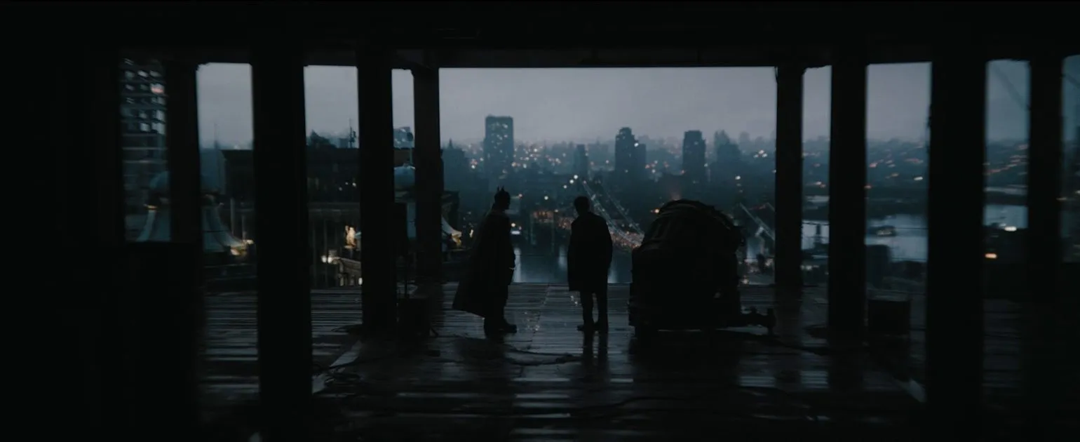 Едва ли действительность, в которой живёт Бэтмен, стала более спокойной. Поэтому мрачность, ощущение бессилия перед обстоятельствами и зло, притаившееся во тьме города, обыграны классическими средствами кинематографа.