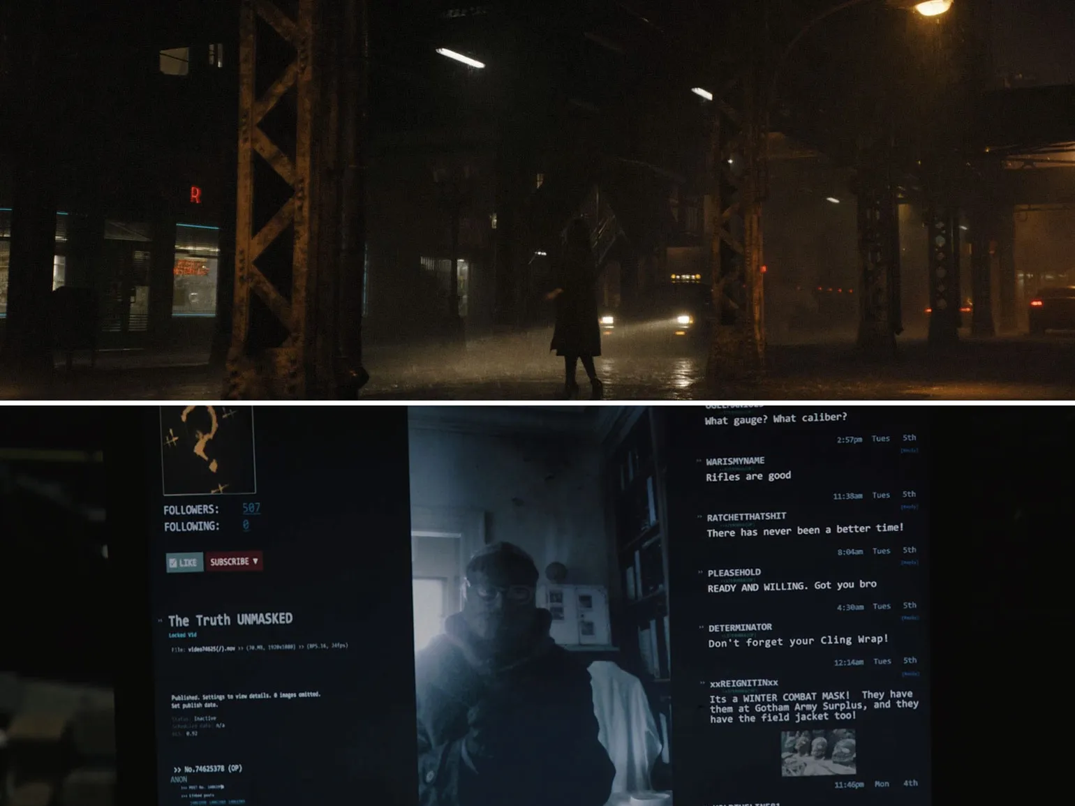 По мере разгадывания ребусов зрители стремительнее погружаются в сложно устроенный мир преступности. А Брюс Уэйн из отшельника с множеством гаджетов трансформируется в уязвимого героя, познающего себя и травмы прошлого.