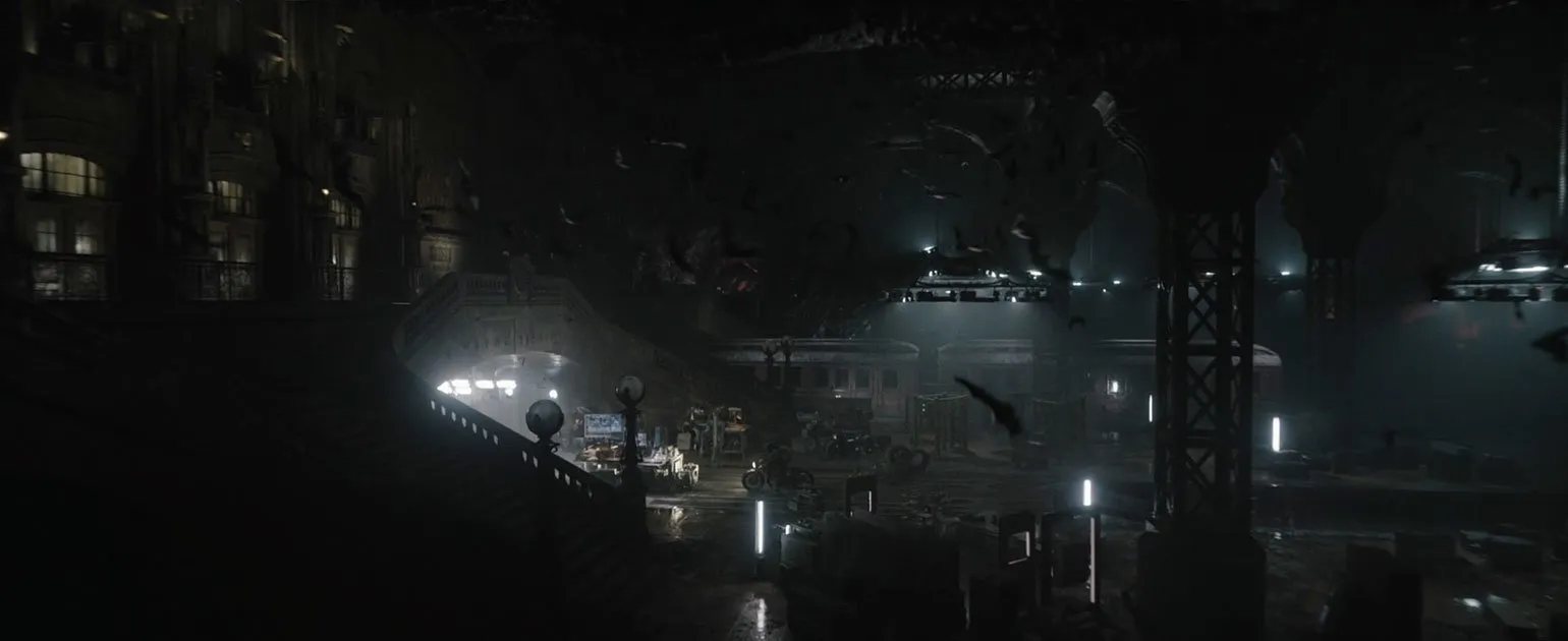 С одной стороны, беспорядочное подземелье используется как большой гараж, где Бэтмен отлично ориентируется, проводит эксперименты и прячется от дневного света. С другой — «пещера» Бэтмена выходит к замку, напоминающему о наследии влиятельного отца и сочетающему избыточность барочных элементов с величественным убранством готики.