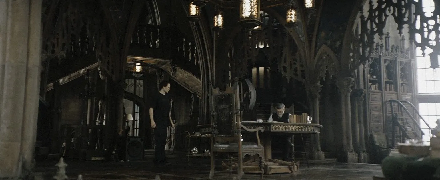 Подземелье Бэтмена — неотъемлемая составляющая персонажа. В трилогии Кристофера Нолана оно было образцом интерьерного минимализма и внушительного технического оснащения. Герой-аристократ из фильма Ривза, утративший опору, собирающий себя по кусочкам из сложных воспоминаний, очевидно, нуждается в чём-то другом.