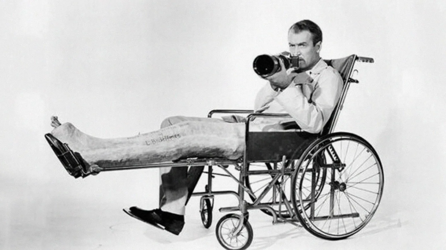 Сюжет. Фоторепортёр Джеймс ломает ногу. Теперь он прикован к своей коляске и заперт в четырёх стенах спальни. Из всех развлечений — наблюдать за жизнью соседей из окна, выходящего во двор, и делать снимки. Через некоторое время фотограф понимает, что стал свидетелем убийства в одной из квартир. Но ему приходится убеждать в том, что это действительно произошло, сиделку, подругу и приятеля-полицейского. Одновременно с историей наблюдателя развиваются и непредсказуемо переплетаются линии жильцов дома напротив.