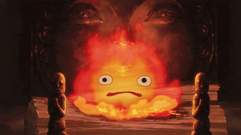 Например, смягчение картинки и спецэффекты применяли в некоторых сценах с Кальцифером — огненным демоном, который поддерживает жизнь в замке. При оцифровке моментов с ним было важно учитывать три момента: смягчение, прозрачность и рассеивание света от демона. Изначально Кальцифера планировали сделать более ярким и слепящим глаза, но потом решили, что его облик должен сочетаться с семейной атмосферой позже в фильме, поэтому сделали шаг назад и немного приглушили огонёк.