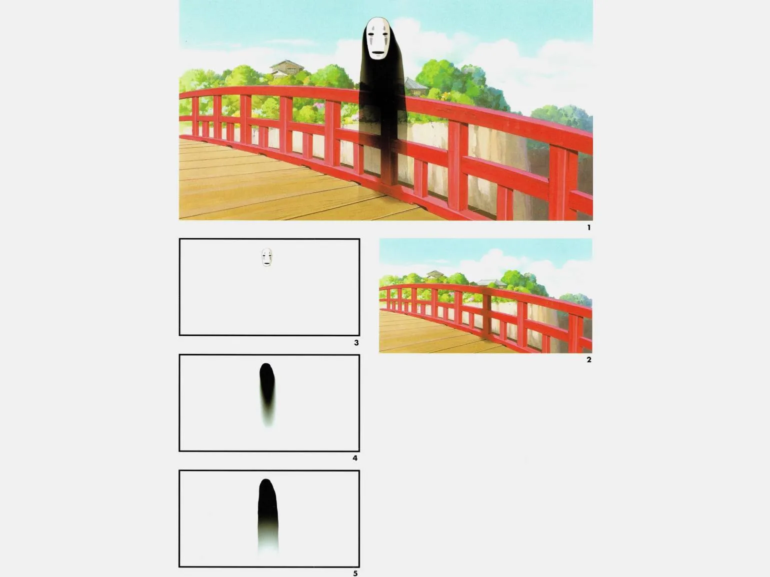 Композитинг помог создать и сцену с исчезающим Безликим. Для этого художники нарисовали тело бога-бродяги, а потом разделили его на элементы и обработали в цифре. Фон, как и всегда, нарисовал арт-отдел — на нём сразу изображена тень от Безликого.