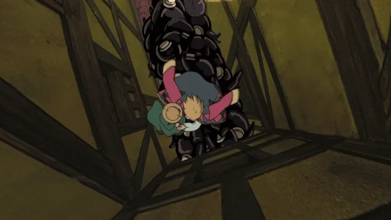 Большую роль 3D и композитинг сыграли в сцене с «кротовой норой». Софи возвращается в прошлое и видит, как Хаул заключает контракт с демоном. Напряжение растёт, волшебное кольцо на пальце девушки распадается, и Софи проваливается в червоточину.