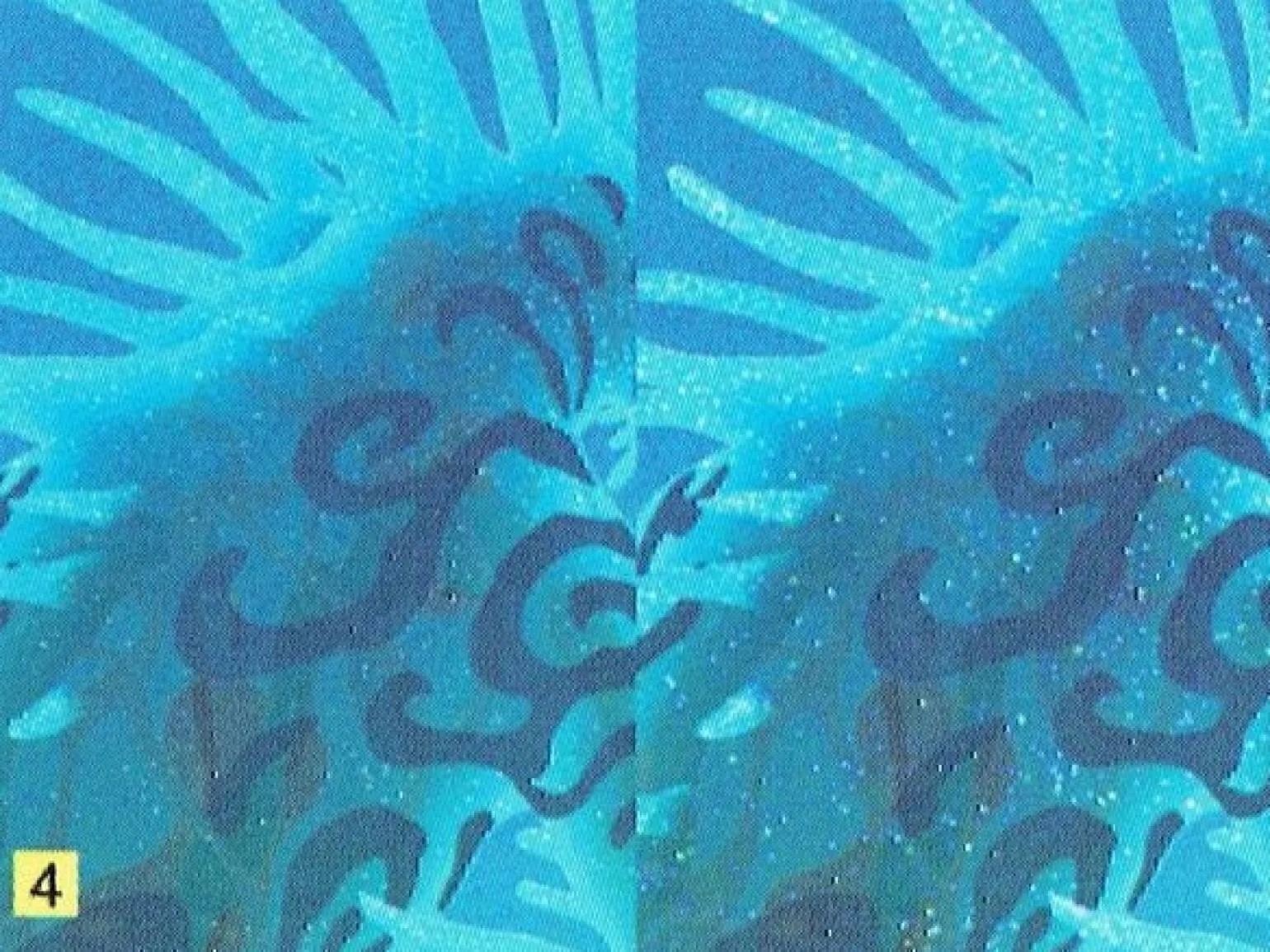 В этой сцене тарелка в левом верхнем углу изображена с таким же количеством деталей, с каким нарисован неподвижный фон.