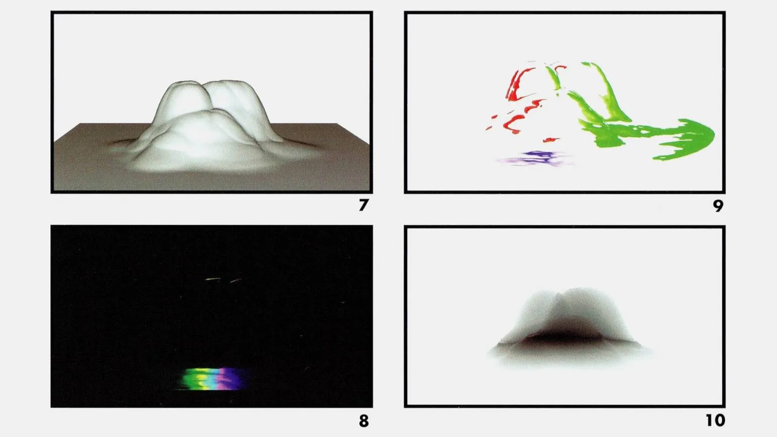 Для этого сначала художники нарисовали фон. Волны сделали в 3D в программе Softimage, для которой дополнительно написали несколько подпрограмм-шейдеров. Затем по отдельности создали падающий на воду и морское дно свет, отражение стены, блики, тонкую белую линию пены. Наконец, композитингом собрали всё в единую картинку.