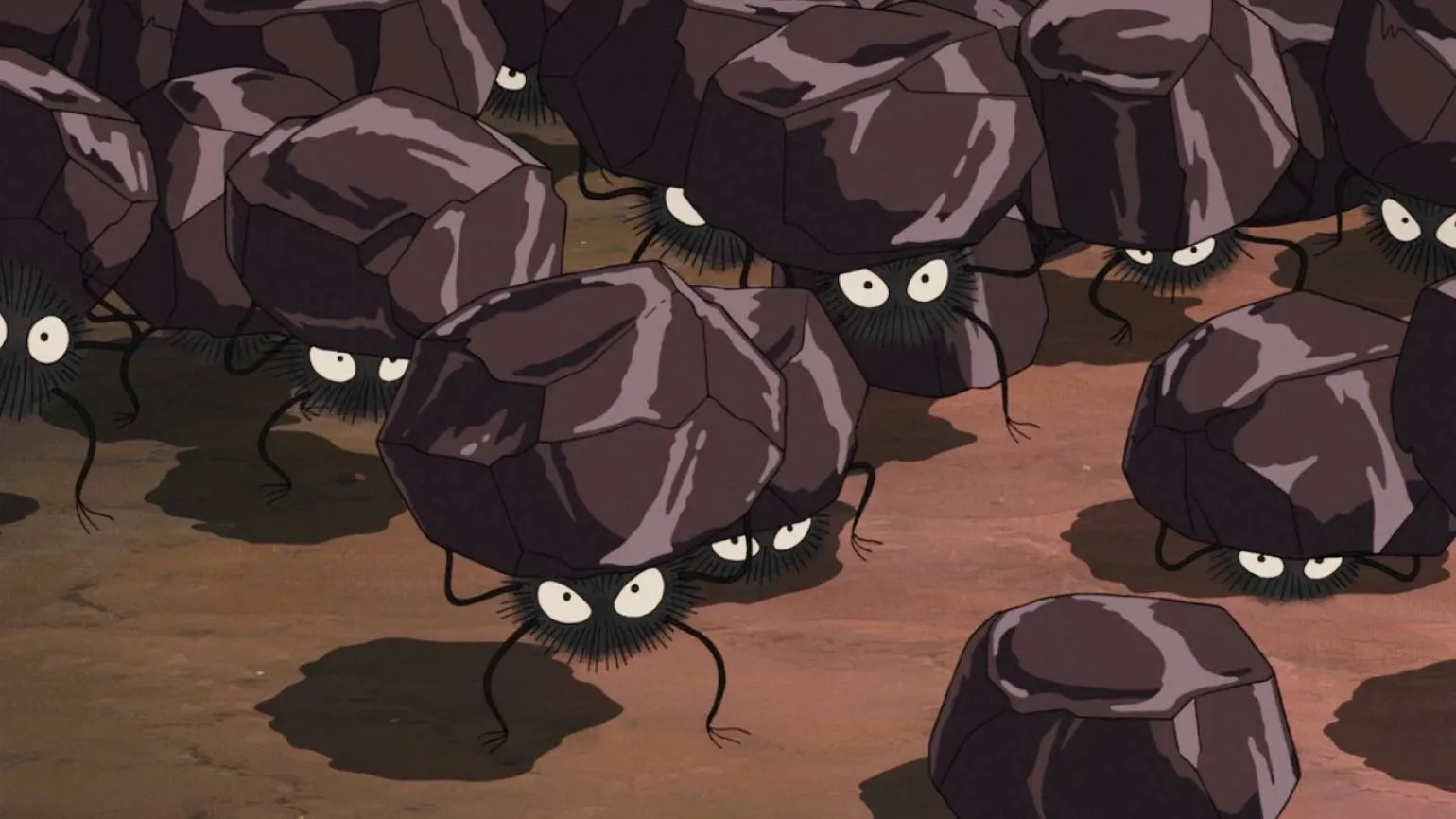Для анимации каждый сусуватари был разделён на отдельные элементы по слоям: тело, глаза, руки с ногами и уголёк, который они тащат. Из-за этого и дополнительных спецэффектов количество слоёв для анимации чернушек сильно увеличилось — настолько, что не хватило букв алфавита для их обозначения.