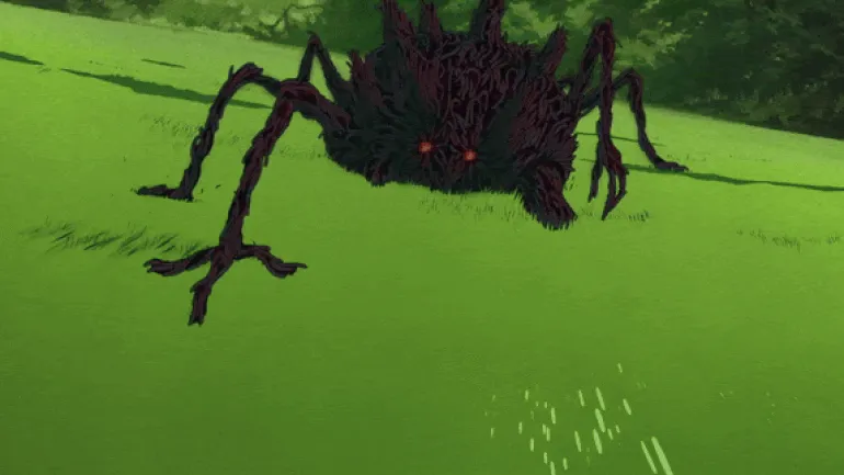 3D. Всё началось со сцены с динамичной атакой разозлённого татаригами — бога-кабана, который из-за ненависти превратился в массу извивающихся чёрных червей.