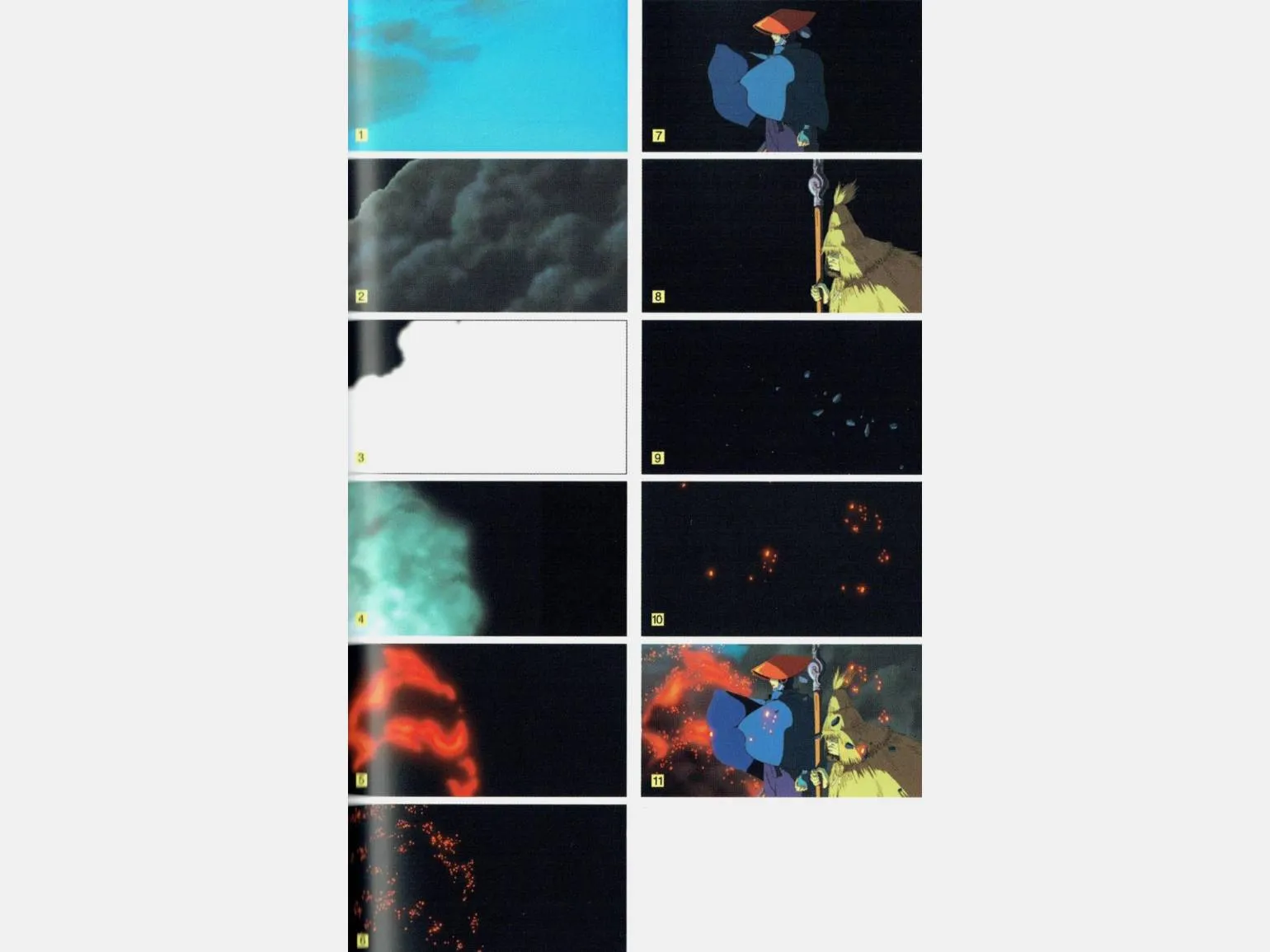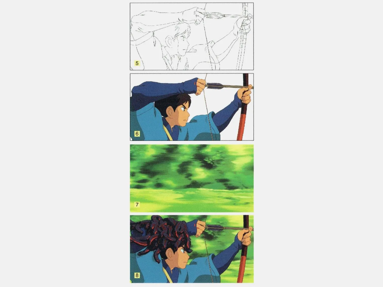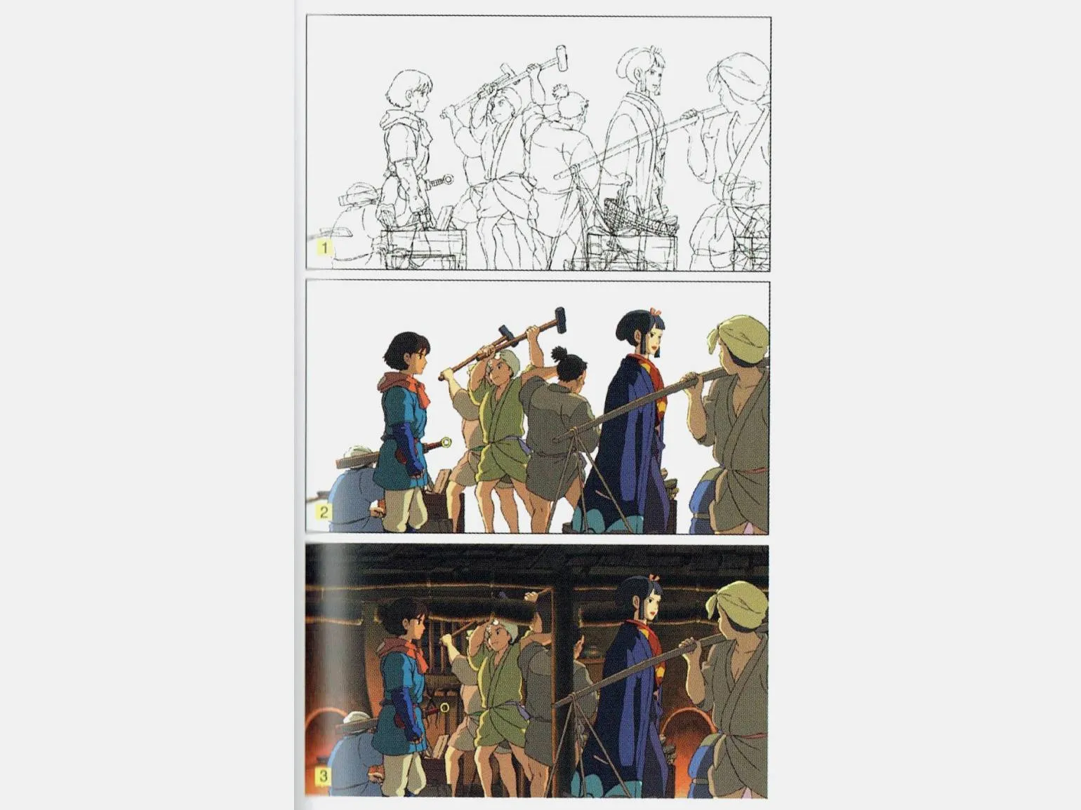Сначала Миядзаки вовсе объявил, что в фоны не будут вноситься изменения в цифре. Но как только работа началась, он попросил правок в духе «добавь немного фиолетового сюда» или «добавь тень сюда» — и сам понял, что цифрового вмешательства не избежать.