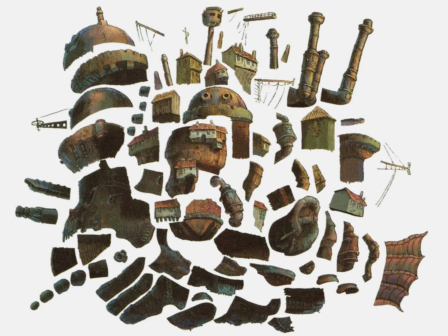 У студии есть твёрдое правило: она никогда не создаёт персонажей в 3D. Однако в этом фильме мультипликаторы своеобразно от этого правила отступили — когда делали сам замок. Он — не просто часть бэкграунда, и Миядзаки хотел, чтобы команда относилась к нему как к протагонисту. Поэтому студия работала над замком как над человеческими персонажами: наделяла характером и показывала этот характер визуально.