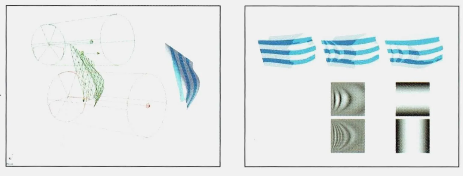 Для них создали 3D-модели и анимировали их так, словно флаги развеваются на ветру. Светотеневой паттерн рассчитали, исходя из искривлений поверхности ткани. Наконец, флаги прогнали через Toon Shader, чтобы придать им 2D-вид.