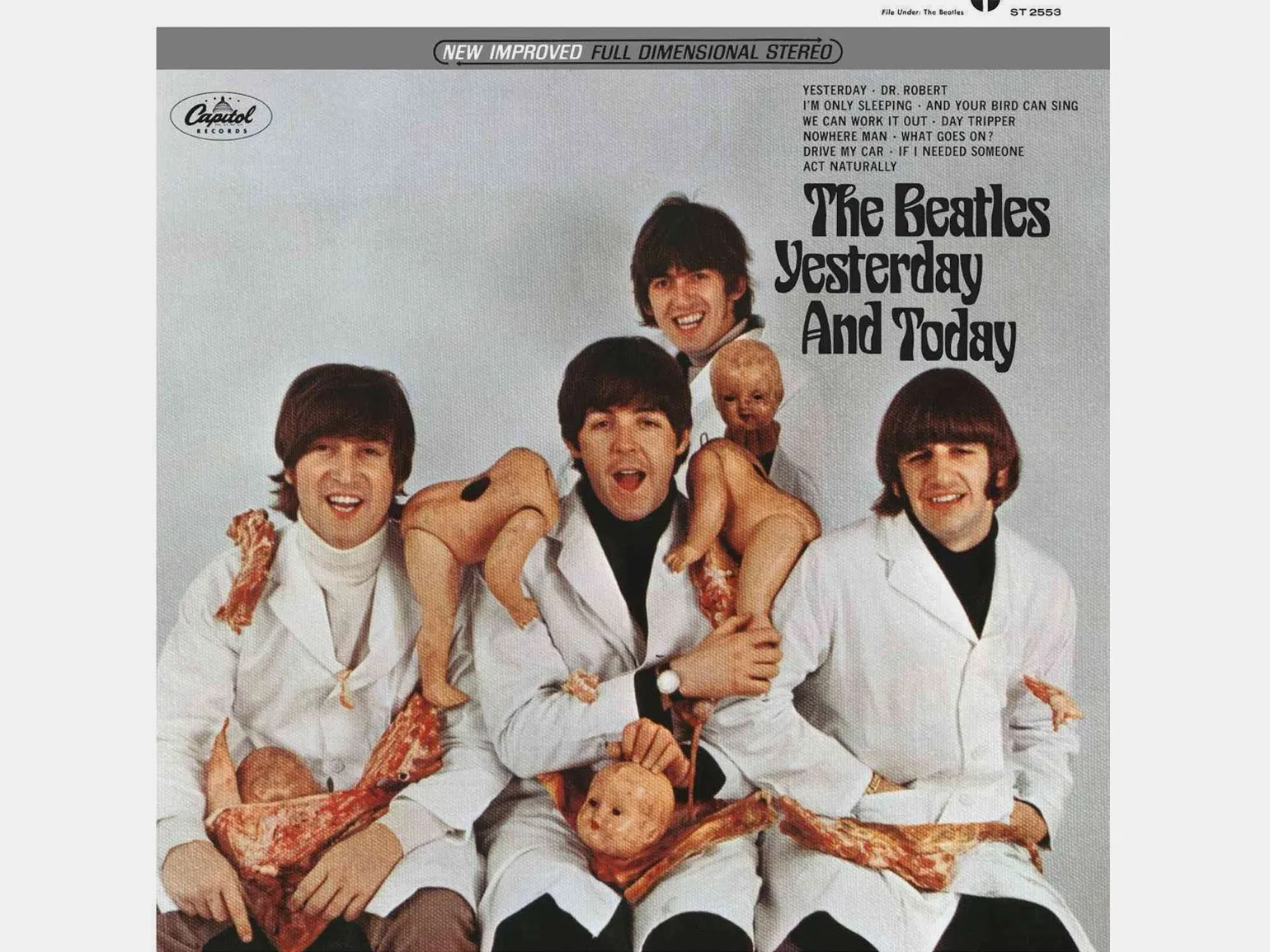 Обложка спровоцировала огромный скандал в прессе. Чаще всего её посыл связывают с протестом музыкантов против политики звукозаписывающей компании Capitol Records. Она выпускала пластинки группы в Америке и будто бы «разделывала» оригинальные альбомы как мясник, разбирая на песни и штампуя сборники. Сами же музыканты утверждали, что таким образом выразили отношение к войне во Вьетнаме.