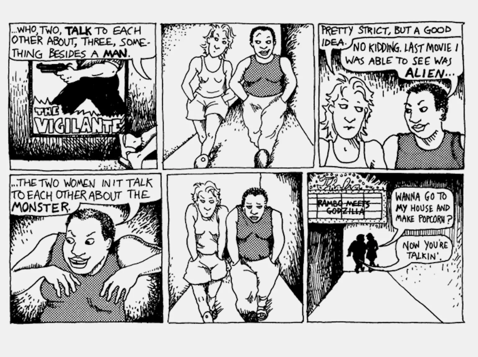 Спустя более полувека — в 1985 году — Элисон Бекдел (отвечала за рисунок) и Лиз Уоллес (отвечала за идею) преобразовали мысли Вулф в комикс Dykes to Watch Out For. В нём две девушки проходят мимо кинотеатра и обсуждают три требования к фильму, которые делают его достойным просмотра. Шуточный комикс быстро обрёл популярность сперва среди деятелей киноиндустрии, а затем и среди обывателей.