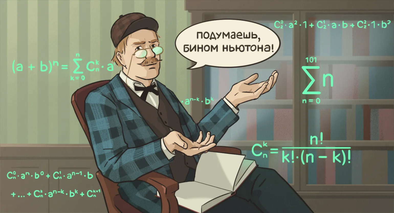 Поэтому, если видите себя в будущем в data science или криптографии, разобраться с биномом Ньютона будет полезно. А если даже и нет — сможете уверенно отвечать друзьям в духе: «Видал я этот ваш бином, там всё проще пареной репы». Тоже какой-никакой, но профит. А теперь к делу.