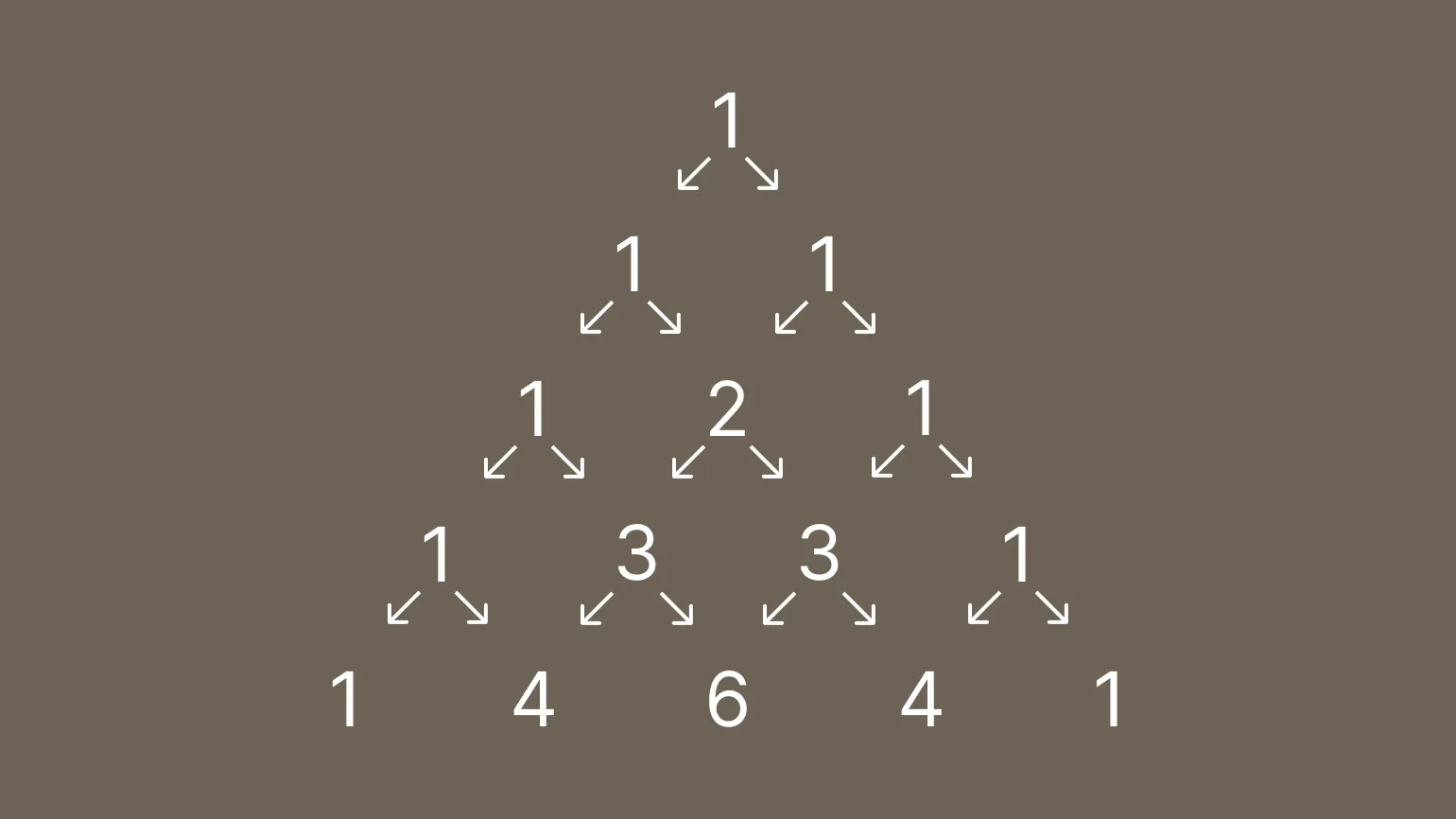 Фишка этого треугольника в том, что нам не нужно много раз считать факториалы, чтобы найти биномиальные коэффициенты. Всё, что необходимо, — это сложить несколько чисел.
