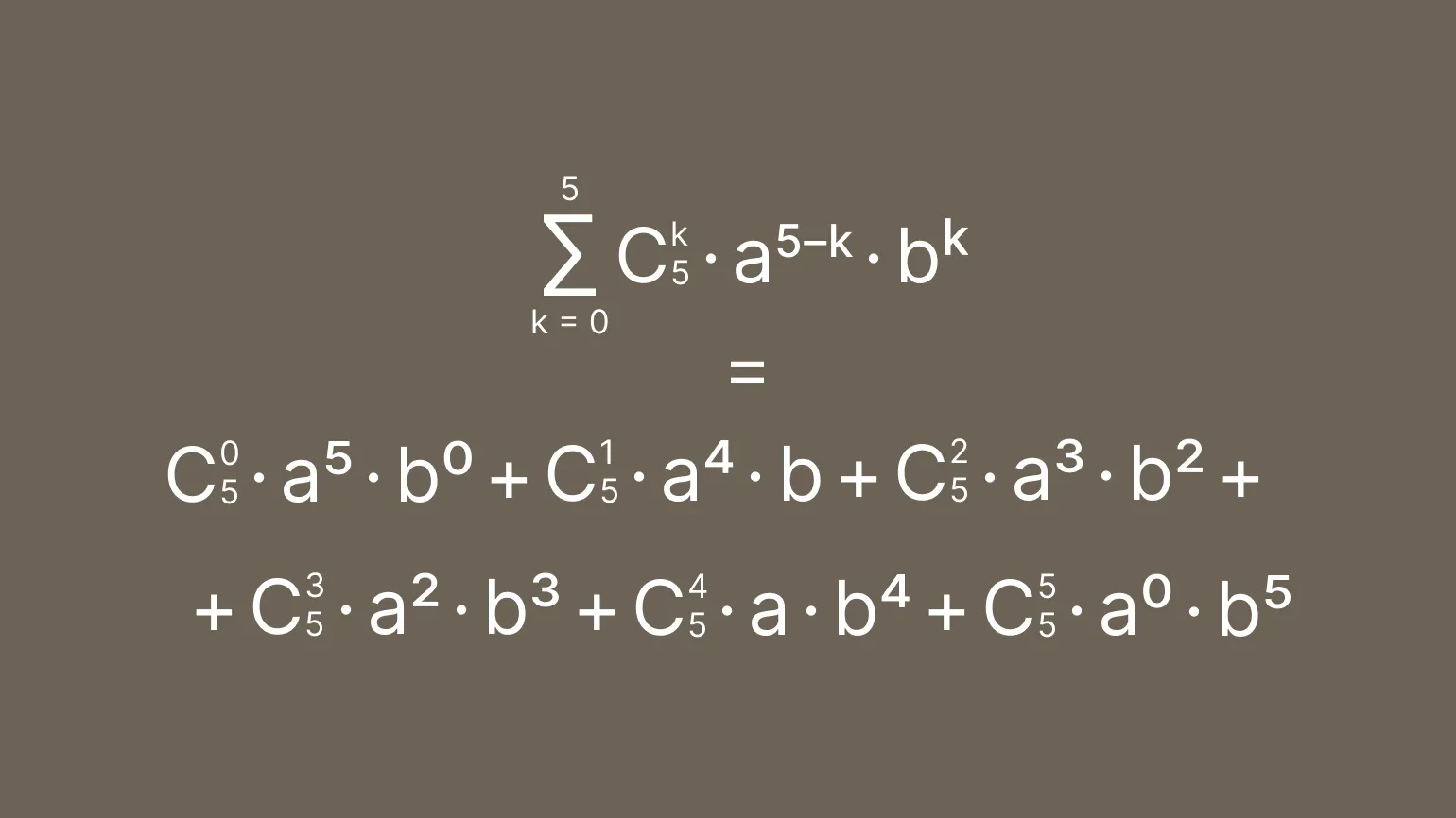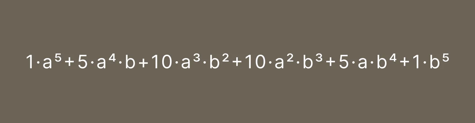 Давайте для примера вычислим коэффициенты для суммы чисел, возведённой в пятую степень: