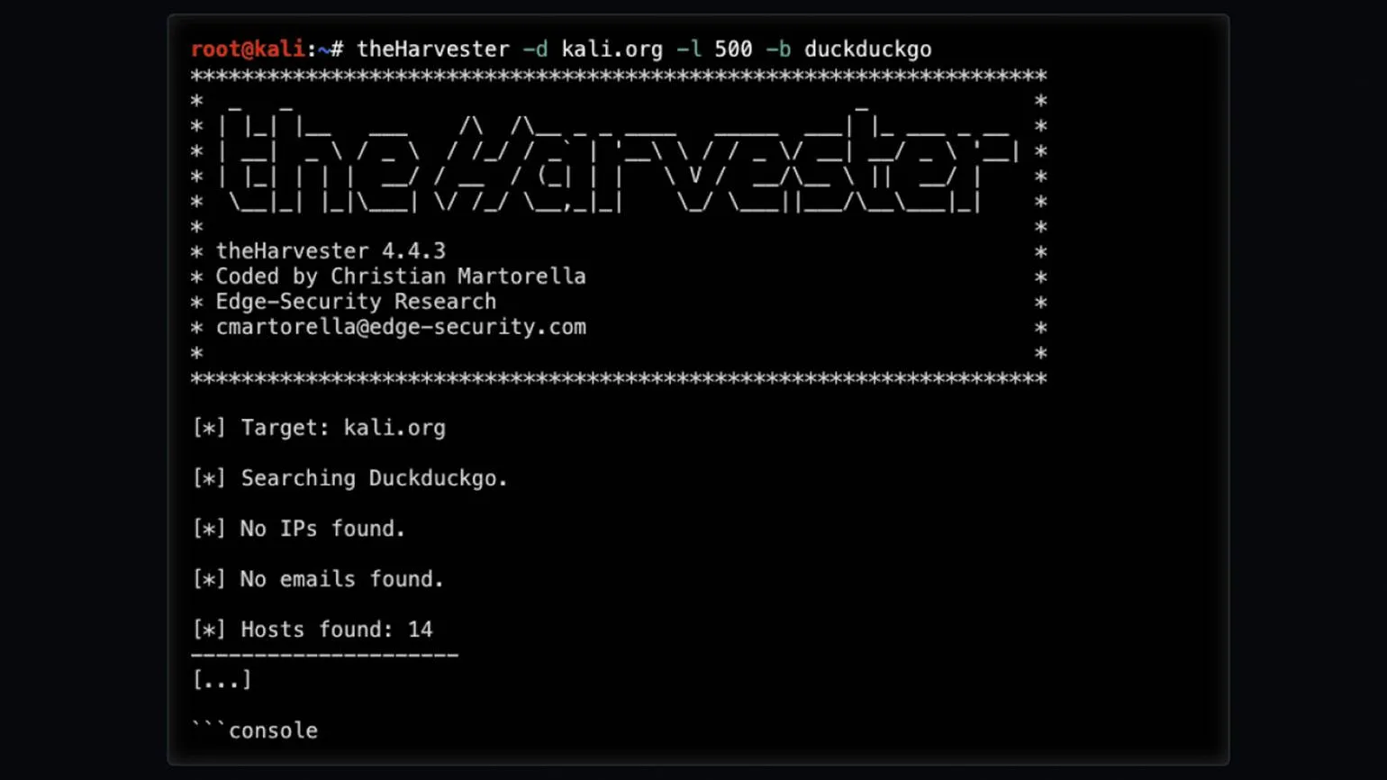 TheHarvester — утилита для сбора информации о компаниях, которой часто пользуются белые хакеры. С её помощью можно найти адреса электронной почты сотрудников, связанные поддомены и IP-адреса. Программа анализирует поисковые системы, публичные базы данных и соцсети, собирая доступную информацию.