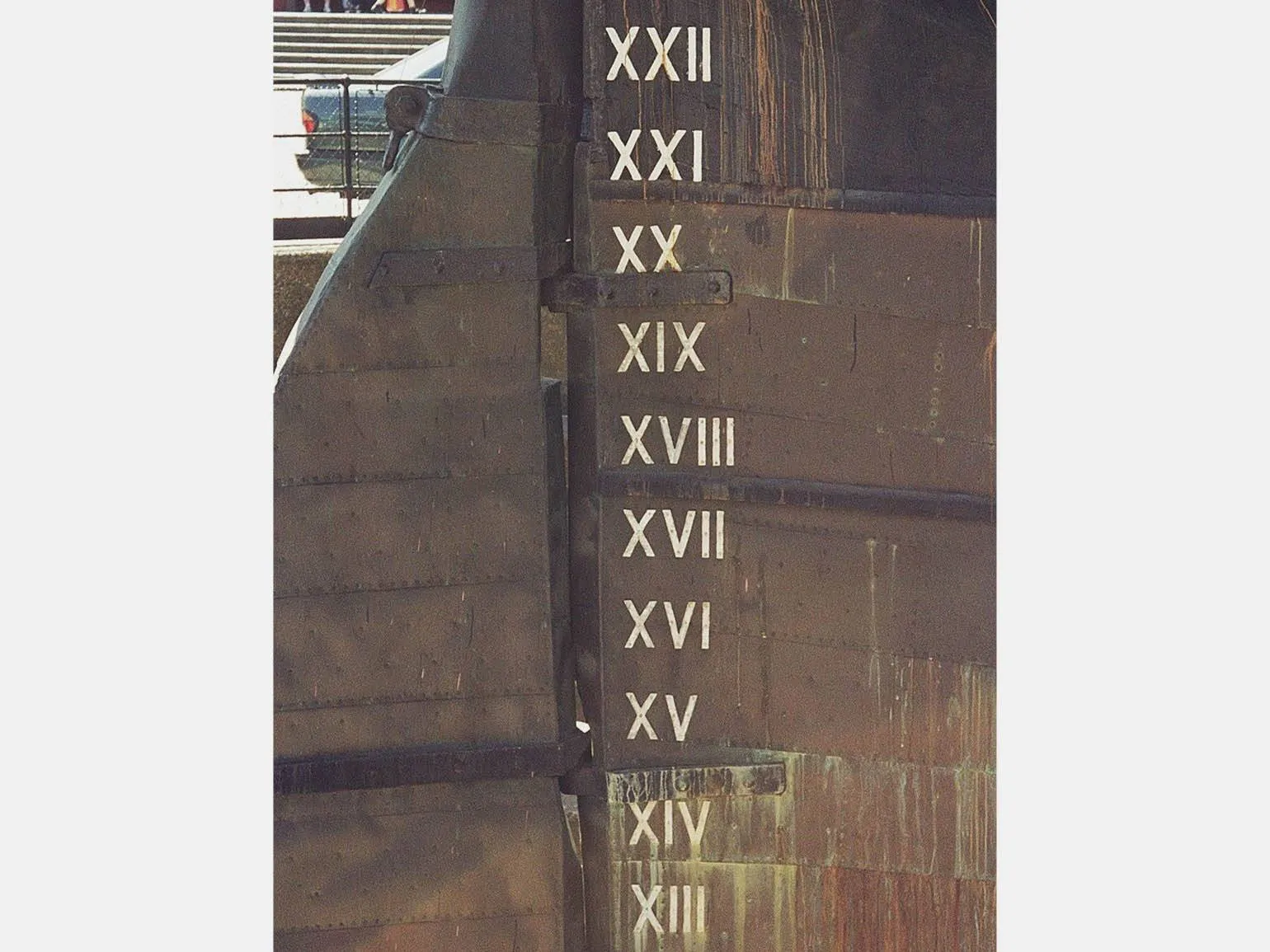 Римские цифры на борту судна Катти Сарк — старинного парусника в музее Гринвича. Цифры обозначают маркировку ватерлинии — отметки на корпусе корабля, показывающие глубину погружения в водуФото: Alex1011 / Wikimedia Commons
