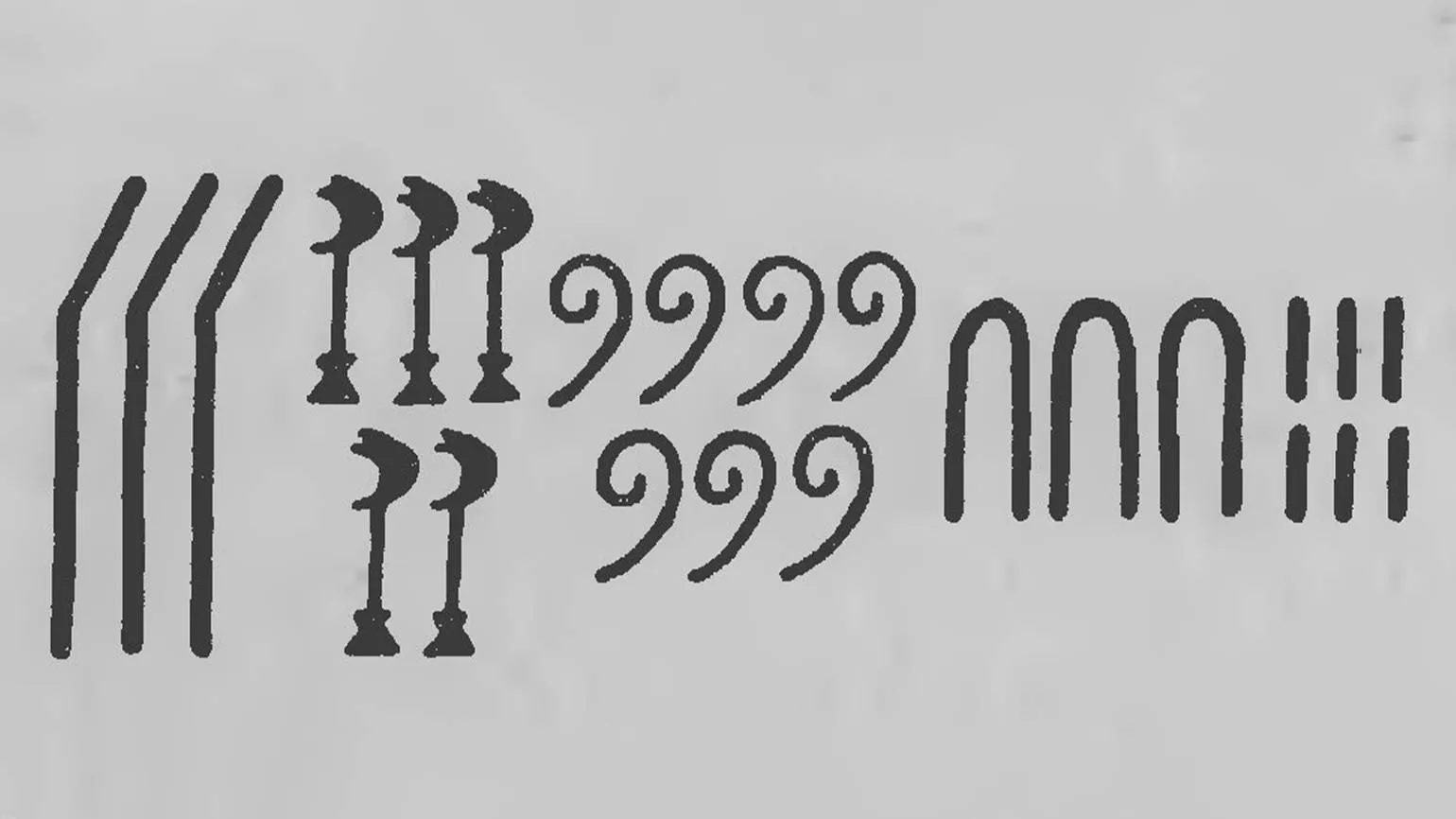 Фрагмент древнеегипетской надписи: запись числа 35 736, примерно II тысячелетие до н. э.Изображение: Public Domain / Wikimedia Commons