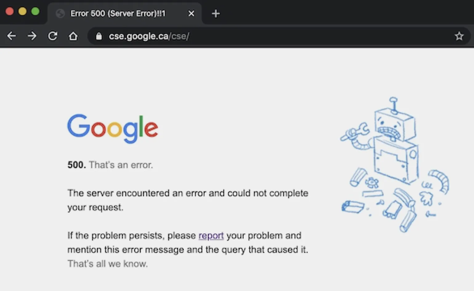 Ошибка 500 — Internal Server Error, что в переводе означает «внутренняя ошибка сервера», а значит, решить её могут только администраторы и разработчики сайта. Но проблема в том, что она — уникальная. Сервер выдаёт её, когда остальные коды не подошли, и получается, что проблема действительно серьёзная. Решить такую проблему — всё равно что победить на городской олимпиаде по русскому языку «Русский медвежонок».