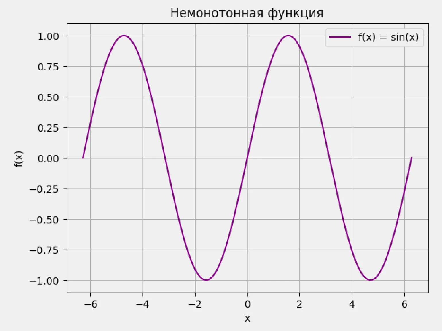 Рассмотрим поведение немонотонной функции f(x) = sin(x):
