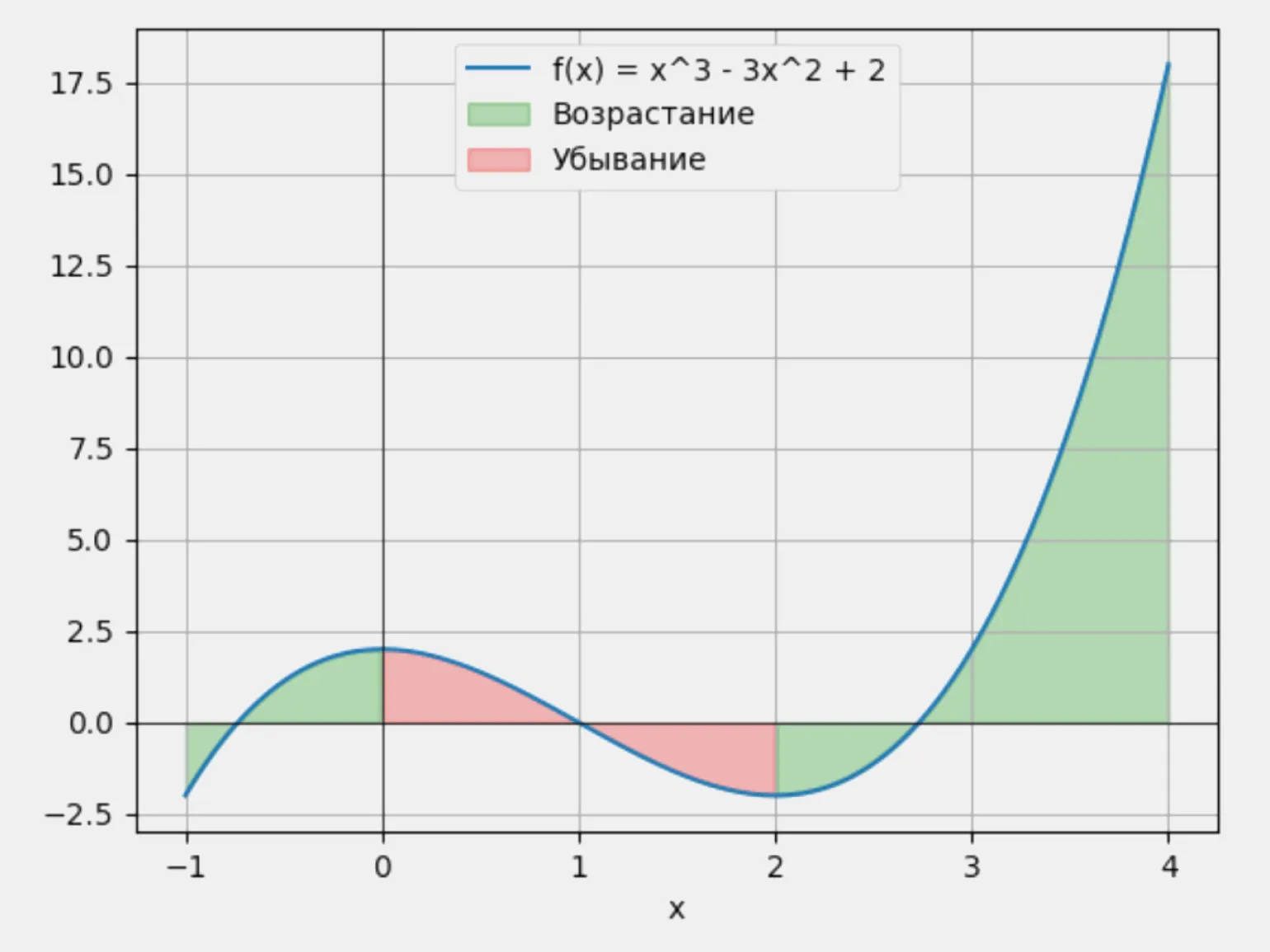 Рассмотрим уже знакомую нам функцию f(x) = x³ − 3x² + 2: