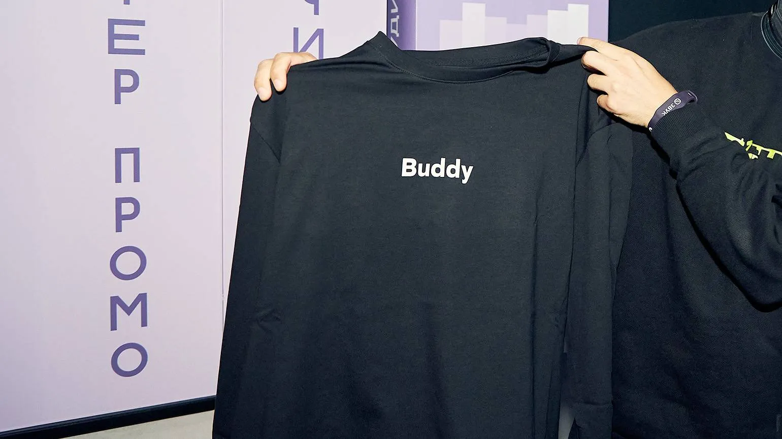 - Дарим привлекательный мерч. Все бадди, чьи подопечные прошли испытательный срок, получают дизайнерские лонгсливы и футболки с надписью «Buddy».