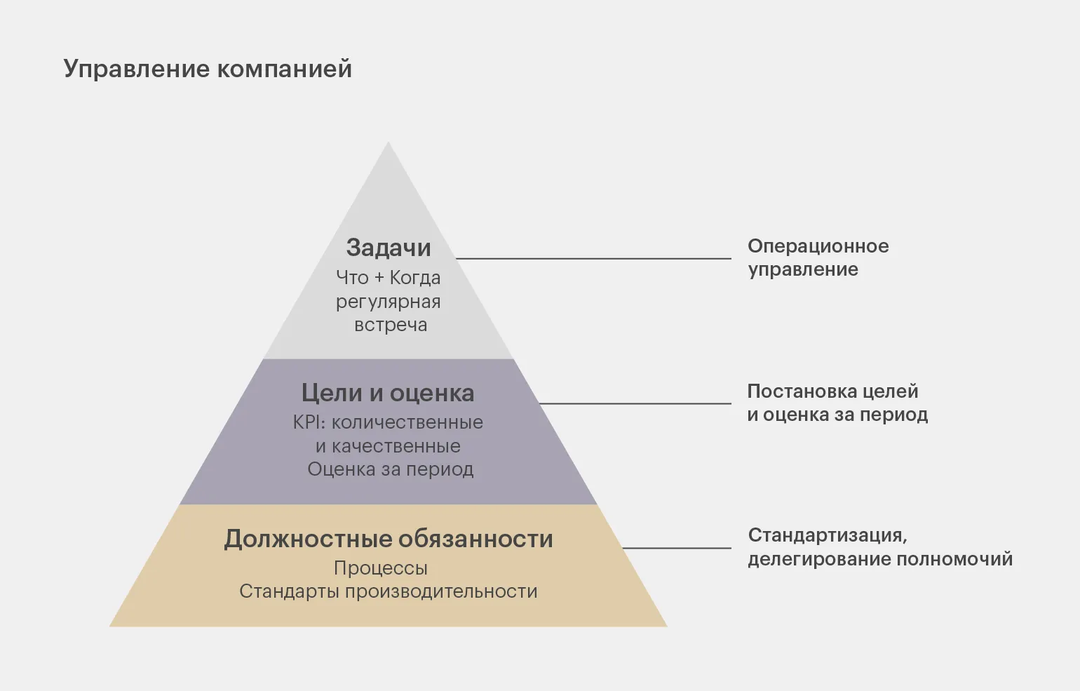 И в-третьих, нужно операционное управление. Постановка сотрудникам задач, определение срока выполнения, регулярные встречи для контроля, обратная связь по тому, что они делают хорошо, и корректировки неправильных действий.