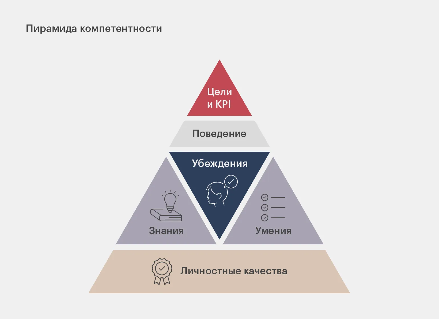 Компетентность сотрудника — это сумма нескольких составляющих. Мы не можем заставить человека измениться, поменять его личностные качества. Но мы можем дать ему знания и умения, а руководитель может повлиять на его поведение и мотивацию, ставя перед ним чёткие цели и помогая ему идти к этим целям с помощью операционного менеджмента.