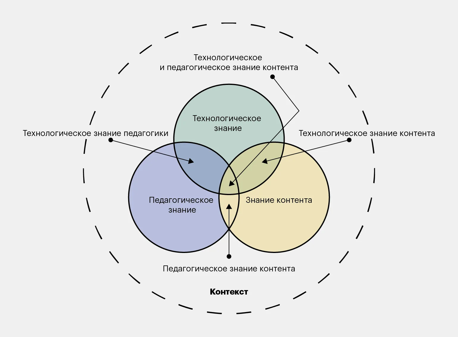 Это знание технологий и их возможностей для организации обучения и преподавания, понимание того, как технологии меняют эти процессы. Например, какие инструменты лучше подойдут для учебных активностей, как адаптировать педагогические модели под конкретные технологии, какие существуют технологические методы фиксации успеваемости.