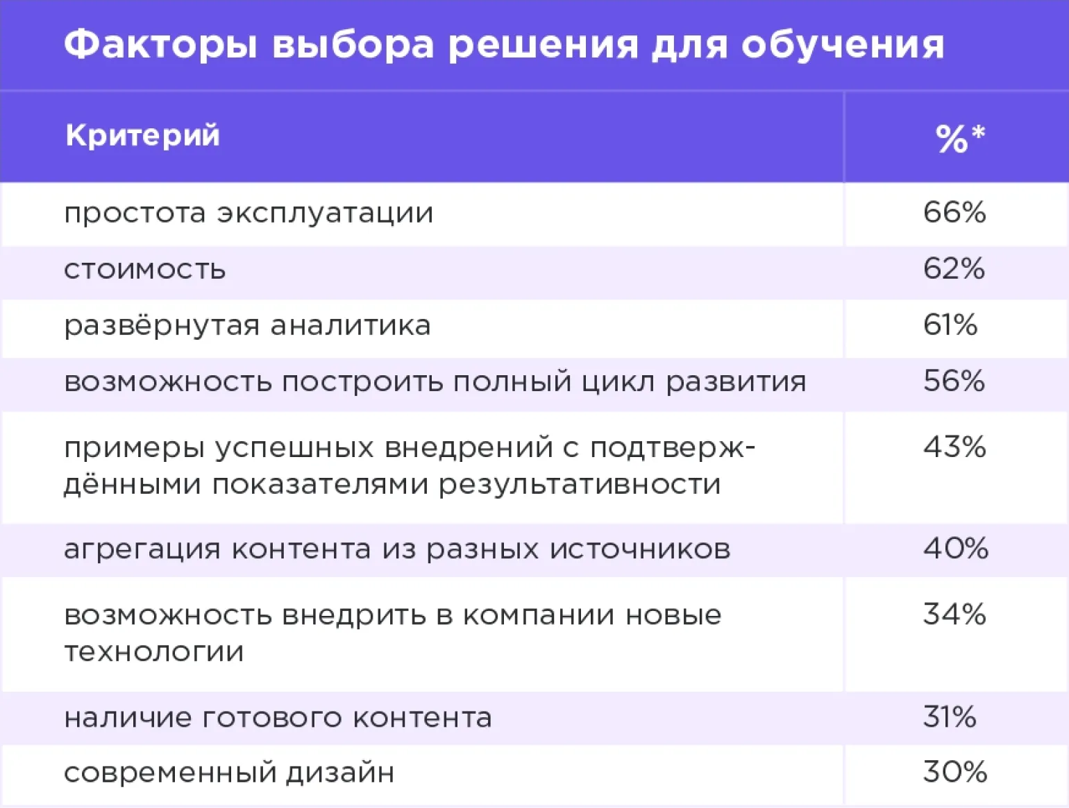 Кстати, весной 2022 года появился ещё один важный фактор выбора инструментов обучения, который на сегодняшний день всем очевиден: из-за ухода иностранных компаний российский бизнес как никогда нуждается в отечественных разработках. Правда, импортозамещение, конечно, не означает, что к выбору будут подходить бездумно.