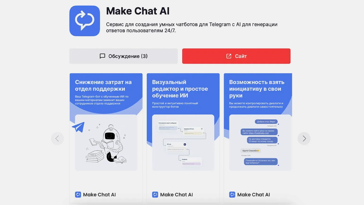 Конструктор ботов с искусственным интеллектомСкриншот: Make Chat AI / Skillbox Media