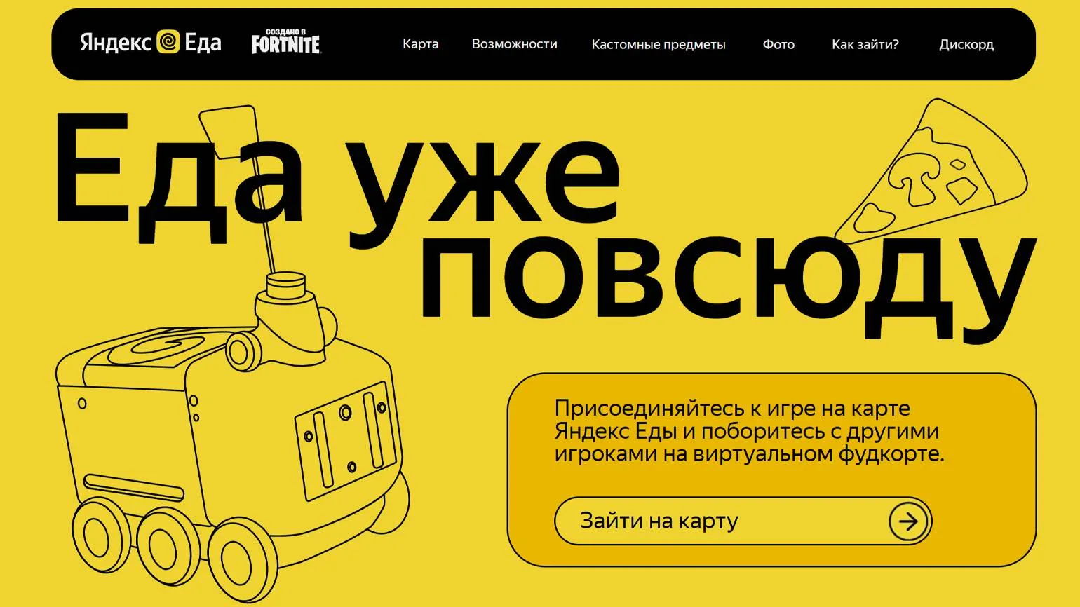 Лендинг игры, созданной на базе FortniteСкриншот: «Яндекс Еда» / Skillbox Media