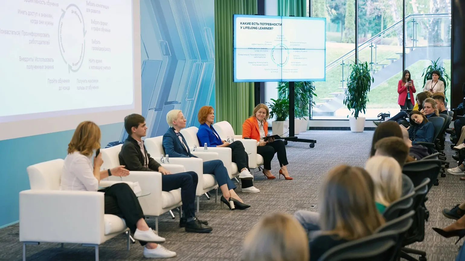 Спикеры сессии «Новые образовательные сервисы. Какие EdTech-продукты необходимы для поддержки lifelong learning?» на конференции «Больше чем обучение: новые приоритеты в меняющемся мире»Фото: «СберУниверситет»