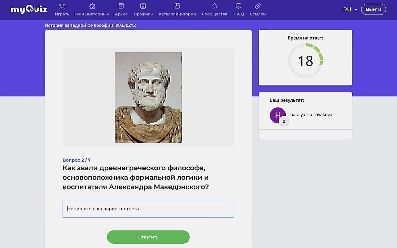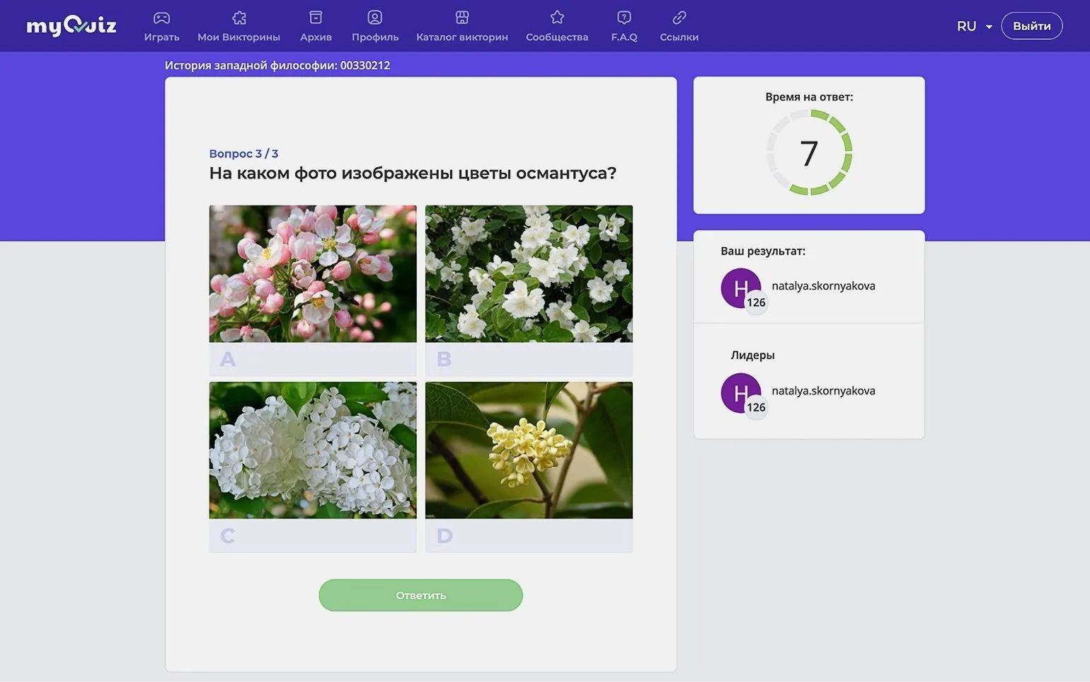 Чтобы закрыть лидерборд и завершить тест, можно нажать на кнопку «Мои викторины».