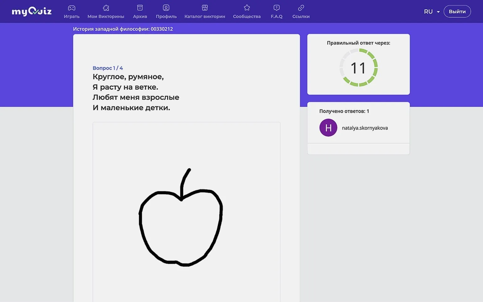 Создателям тестов доступны несколько видов вопросов: открытые, с несколькими вариантами ответов, со множественным выбором, вопросы-голосования. Есть даже формат, в котором на вопрос нужно ответить рисунком.