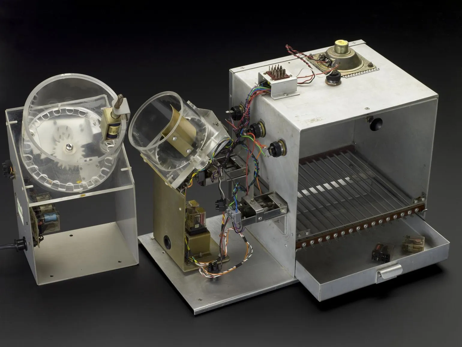 В ящик помещали животное, например, крысу. Каждый раз, когда она нажимала на кнопку, загоралась лампочка и появлялась еда (положительное подкрепление). Сначала нажатия были случайными, но вскоре крысы понимали взаимосвязь и уже специально нажимали на рычаг, чтобы получить порцию корма.