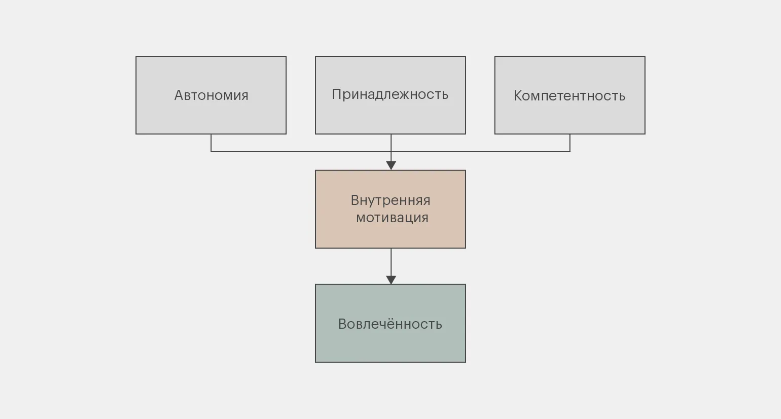 Чтобы подойти к вопросу, как можно повлиять на вовлечённость, рассмотрим, как взаимосвязаны её составляющие. Многие исследования показывают, что компоненты вовлечённости действительно влияют друг на друга и эта связь положительная — то есть повышение одного из компонентов повышает и другие. А вот в вопросе, какие составляющие первичны, а какие вторичны, учёные пока не сошлись во мнении.