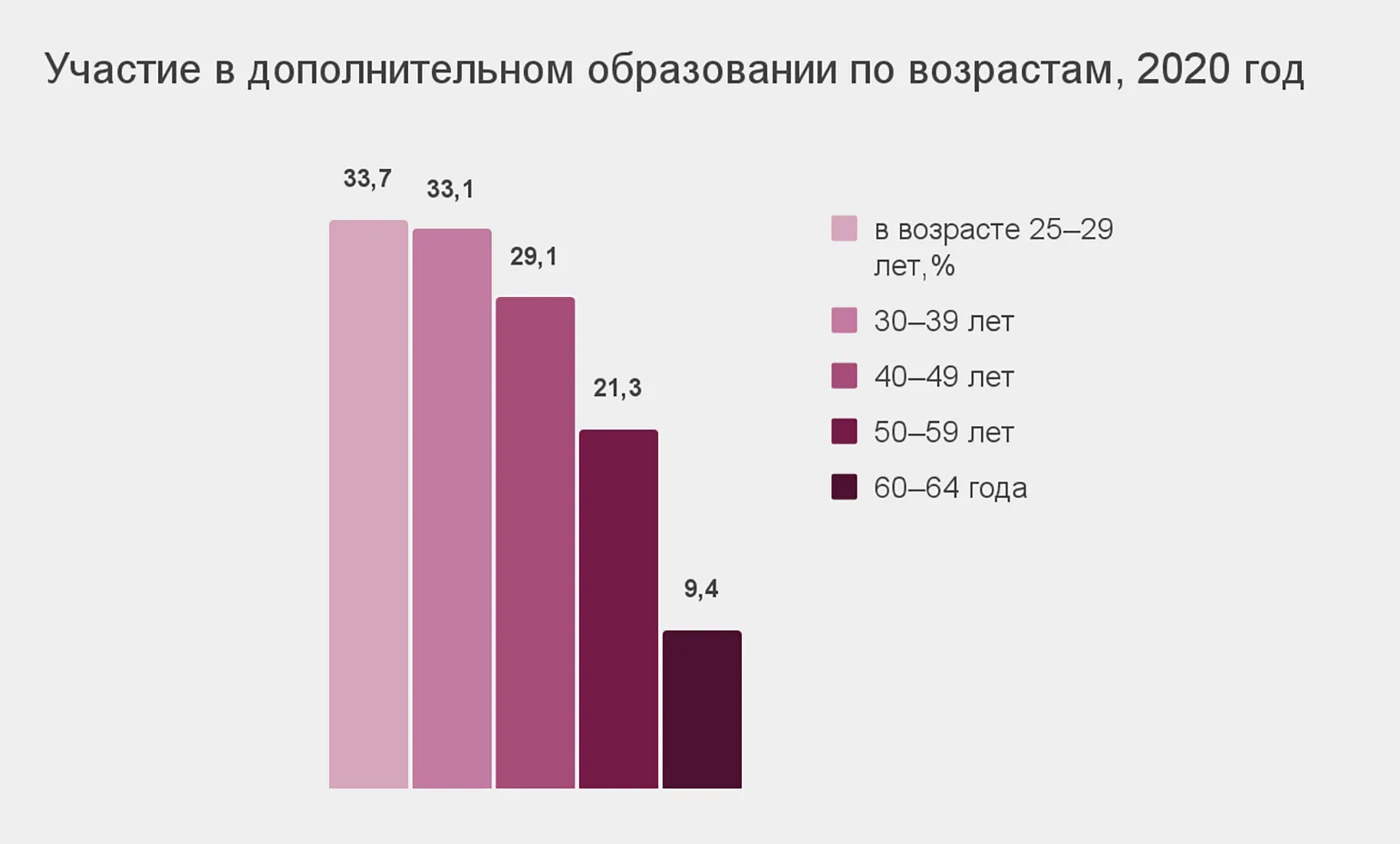 Более обширная статистика показывает, что и в более традиционных форматах взрослые в нашей стране обучаются не так уж часто. Давайте разберёмся подробнее.