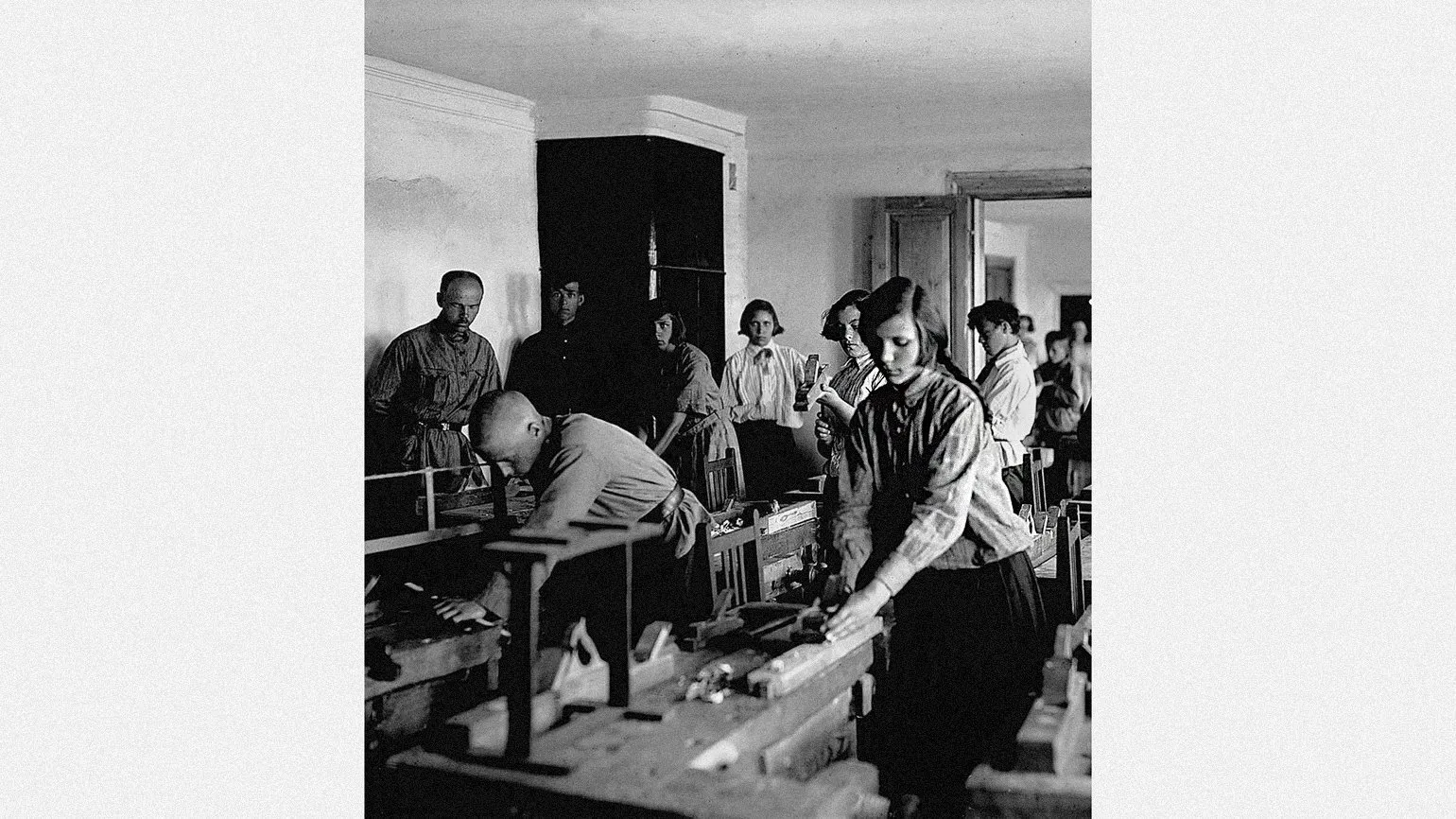 Железнодорожная школа-семилетка №2. Ученики за работой в столярной мастерской. Дата съёмки: 1928–1933 гг.Фото: Государственный исторический музей Южного Урала