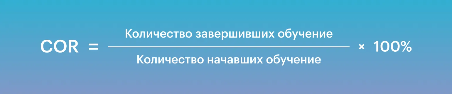COR в русскоязычном пространстве называют доходимостью. Эта метрика демонстрирует, какая часть студентов прошла курс до конца.