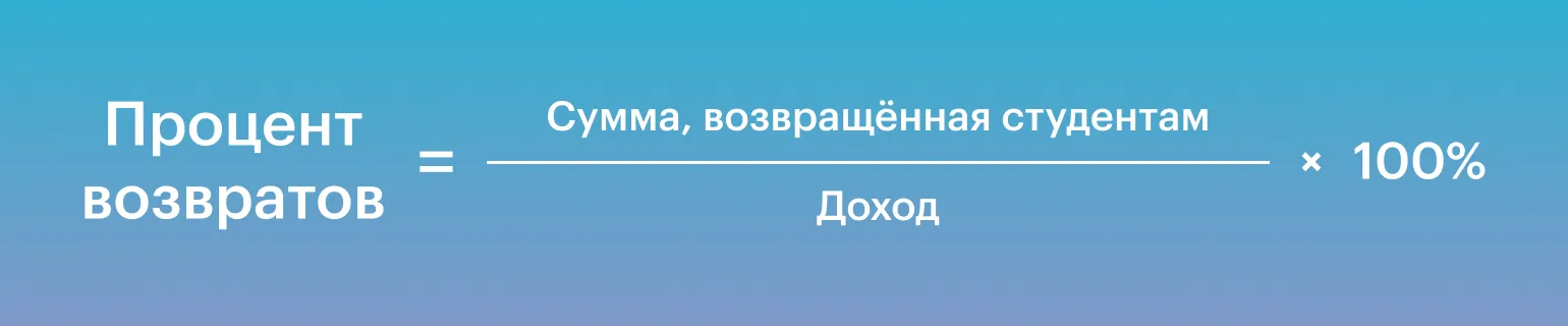 Доля возвратов измеряется в общем доходе онлайн-школы за определённый временной период (месяц или квартал).