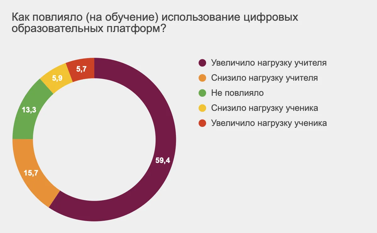 Почти 60% педагогов поделились, что цифровые платформы только увеличили их нагрузку.