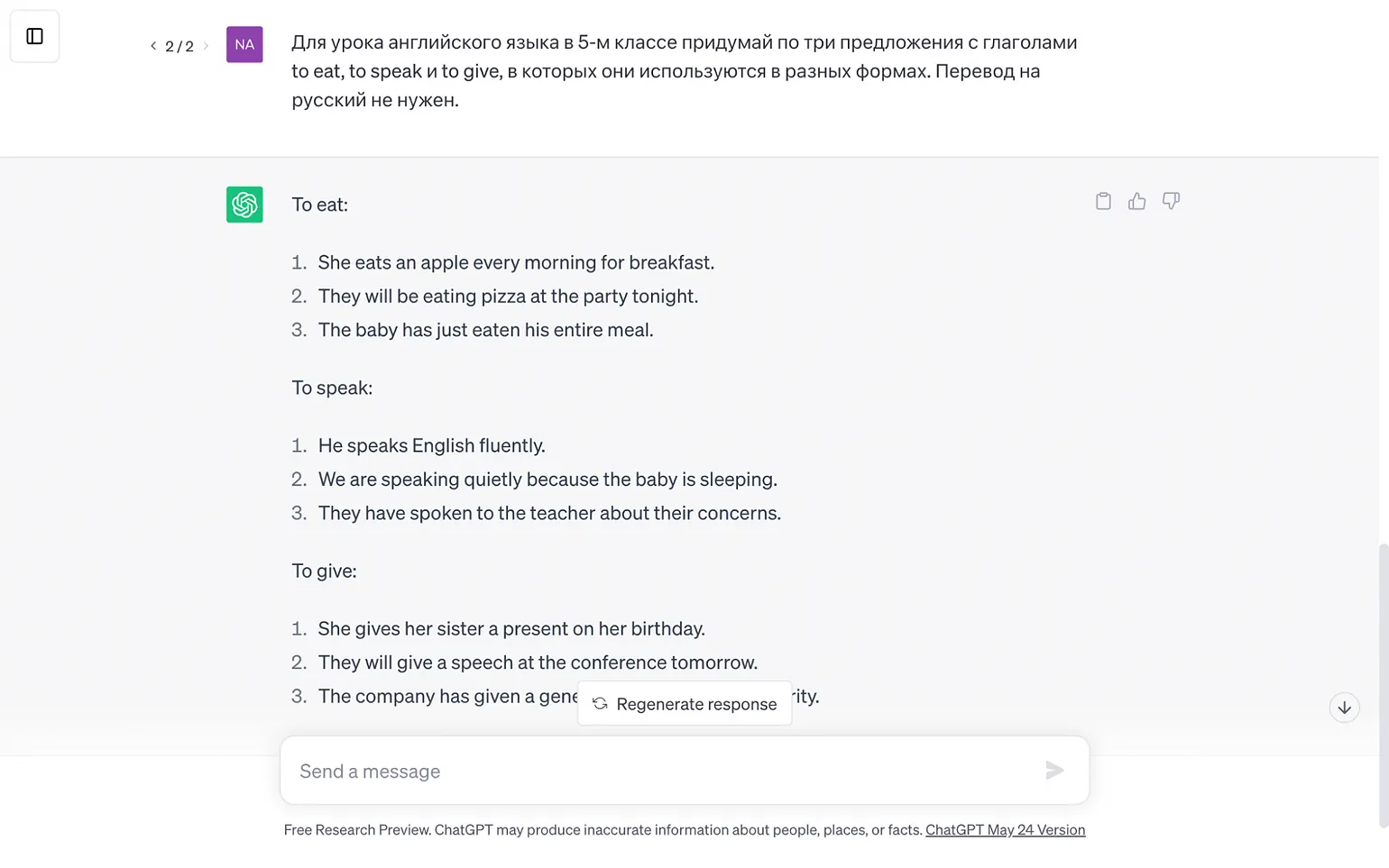 Нейросеть способна сгенерировать примеры для любой темы и любого предмета. Скажем, для урока русского языка ИИ может создать примеры, которые иллюстрируют правило. А для урока иностранного языка — составить сотни предложений с новыми словами или написать оригинальный диалог для отработки разговорных навыков.