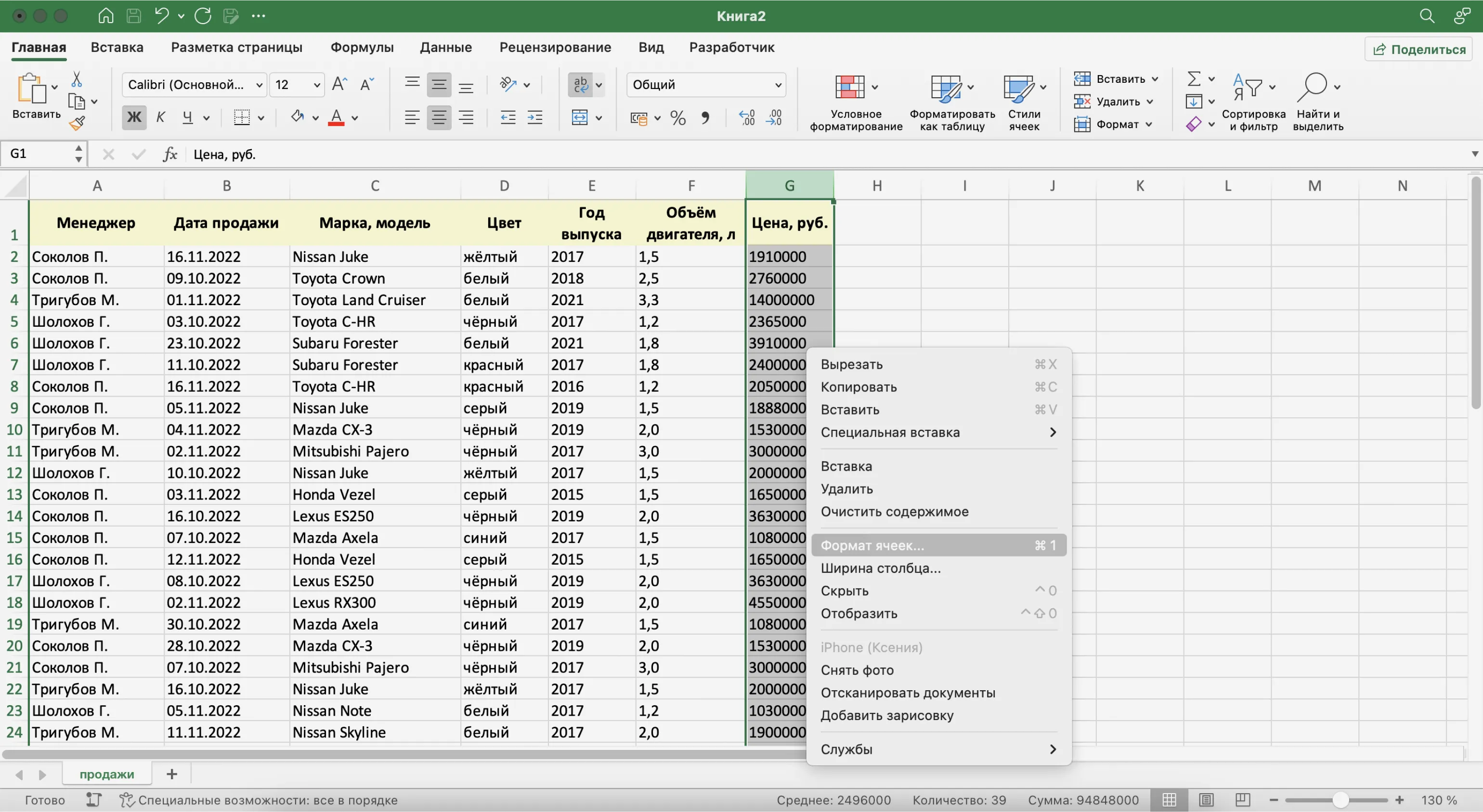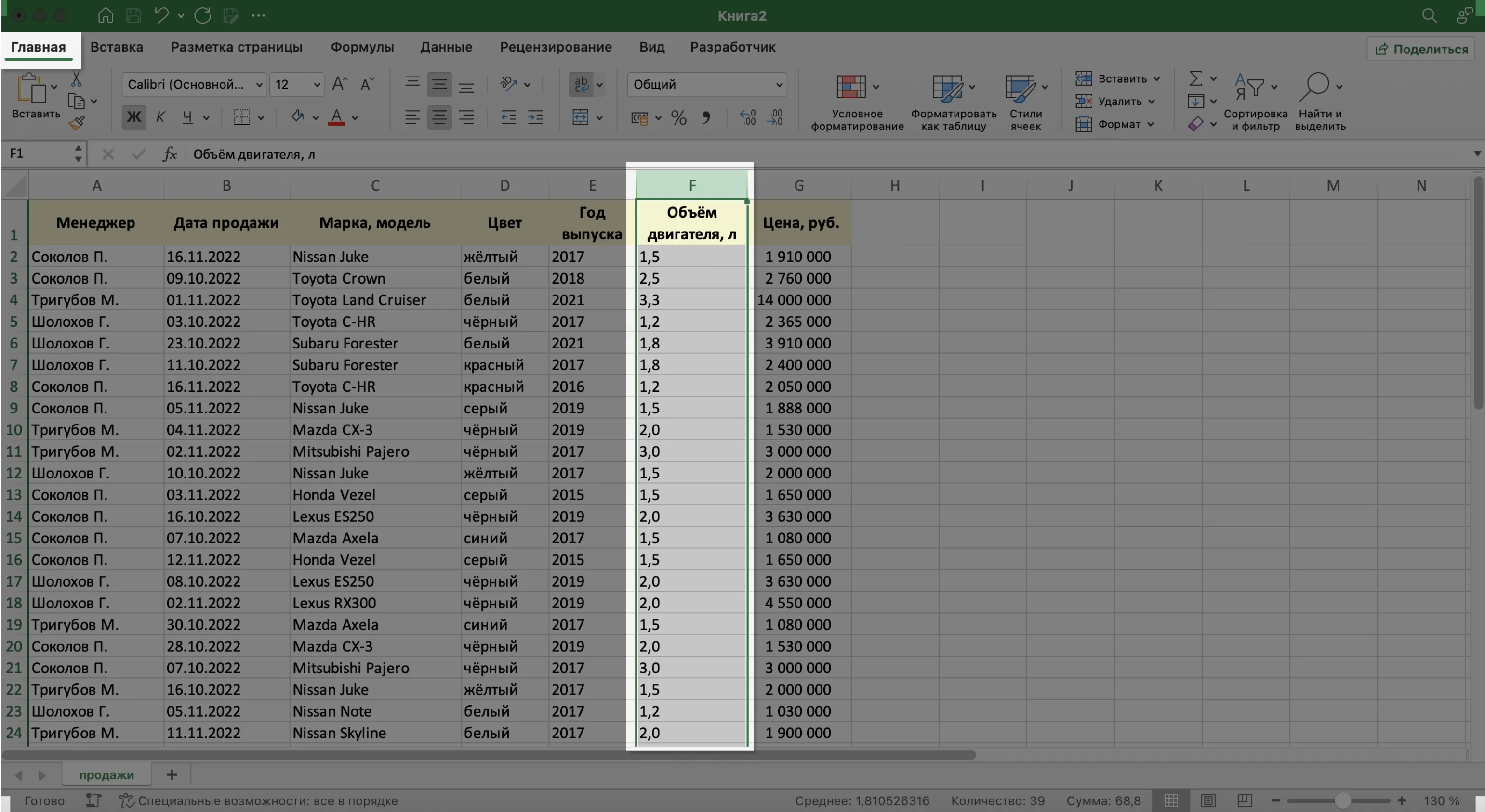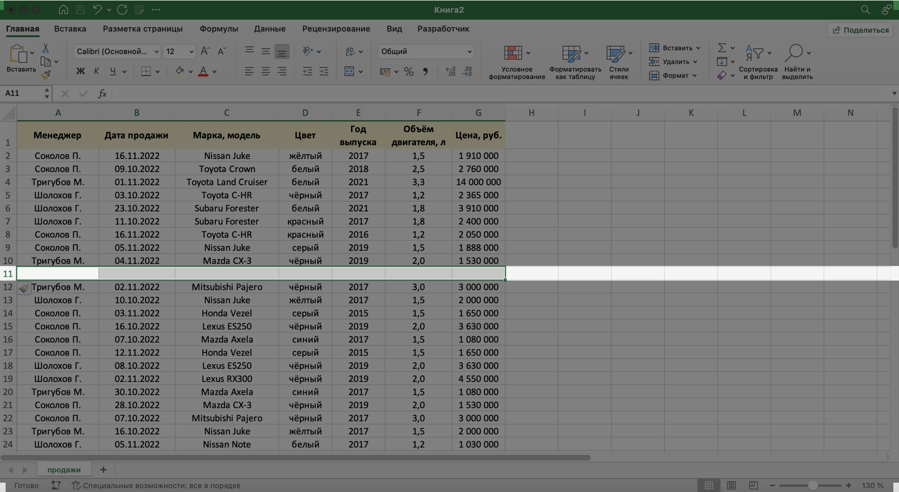 При заполнении ячеек с записями важно придерживаться одного стиля написания. Например, Ф. И. О. менеджеров во всех строках вводить в виде «Иванов И. И.». Если где-то написать «Иван Иванов», то дальше в работе с БД будут возникать ошибки.