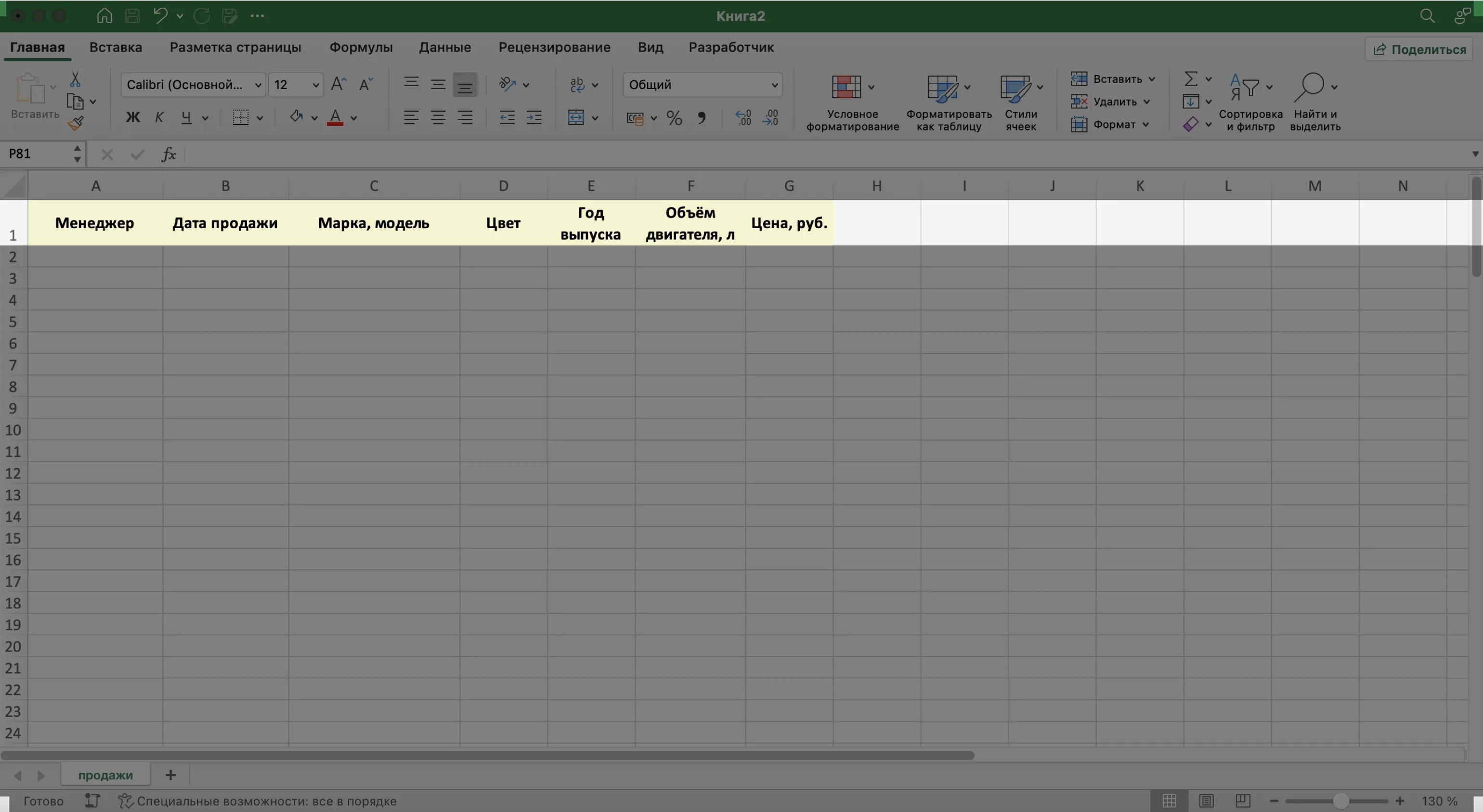 Задача для нашего примера — создать базу данных, в которой будут храниться все данные о продажах автомобилей менеджерами автосалона. Каждая запись базы — одна продажа, поэтому названия полей БД будут такими: